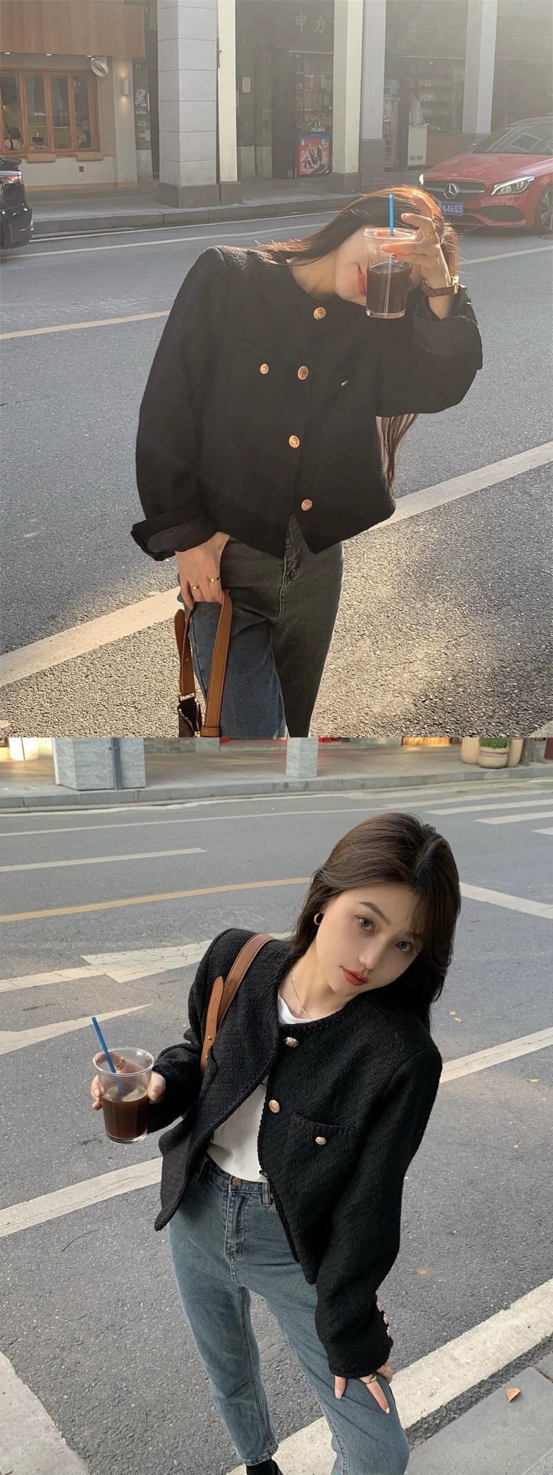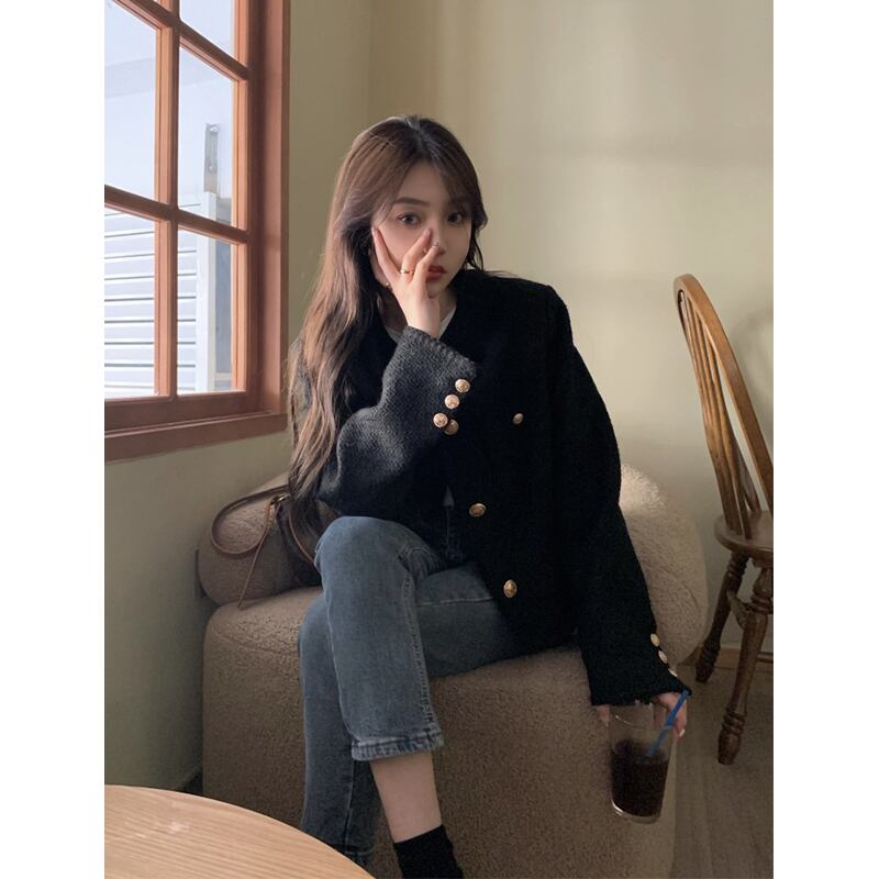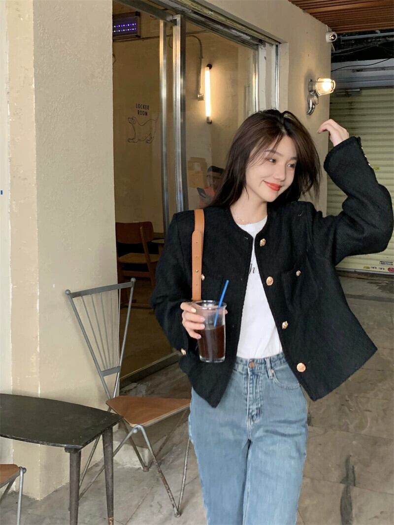 気質小さな香りの良い黒のショートコート秋 2023 新しいハイエンドシングルブレスト長袖カーディガントップ女性 ロング ブラック オータム 秋物 missk16074343469