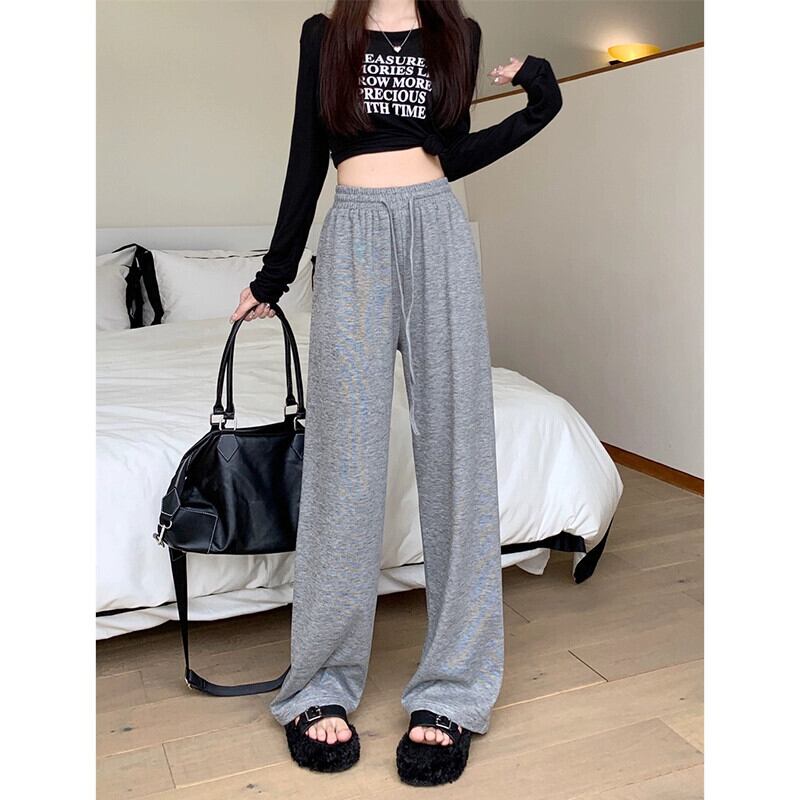 巾着ドレープフロアレングスカジュアルパンツ女性秋 2023 新スタイルニッチ無地ハイウエスト多目的ファッショナブルなズボン ハイウェスト オータム 秋物 ソリッドカラー missk85039874677