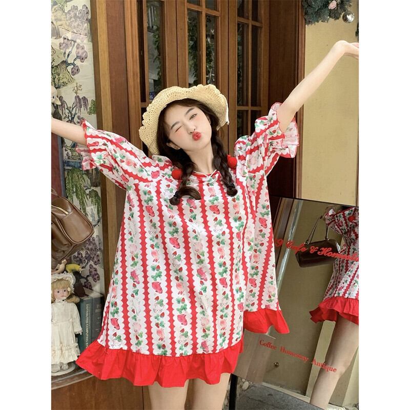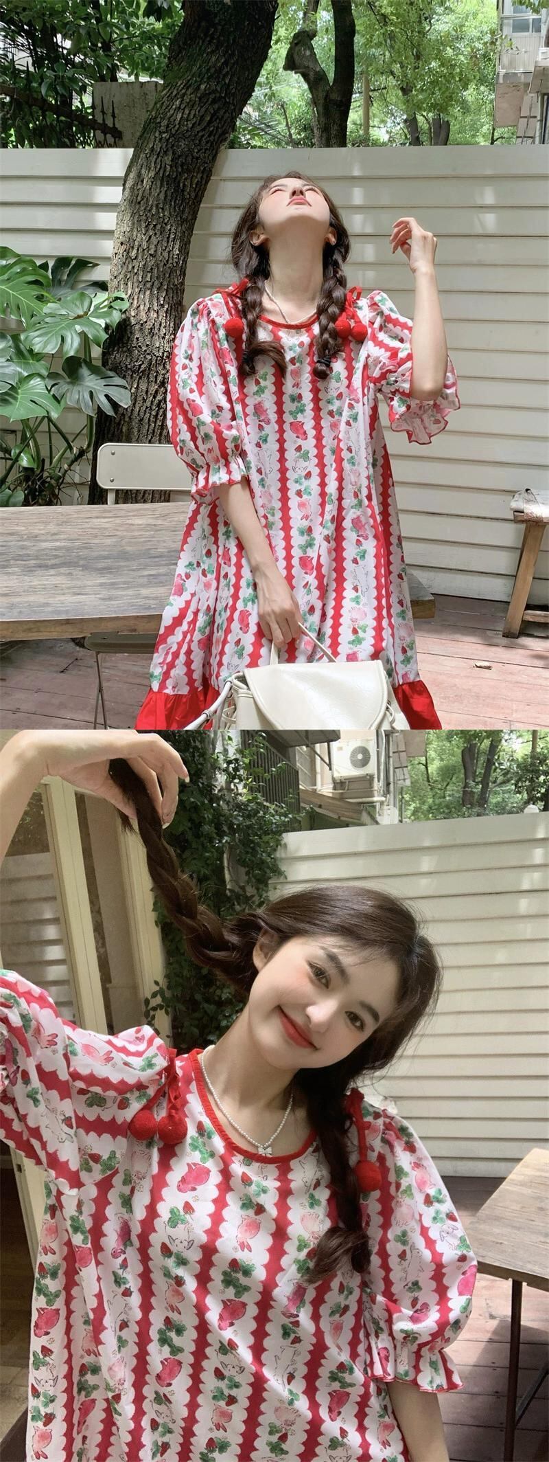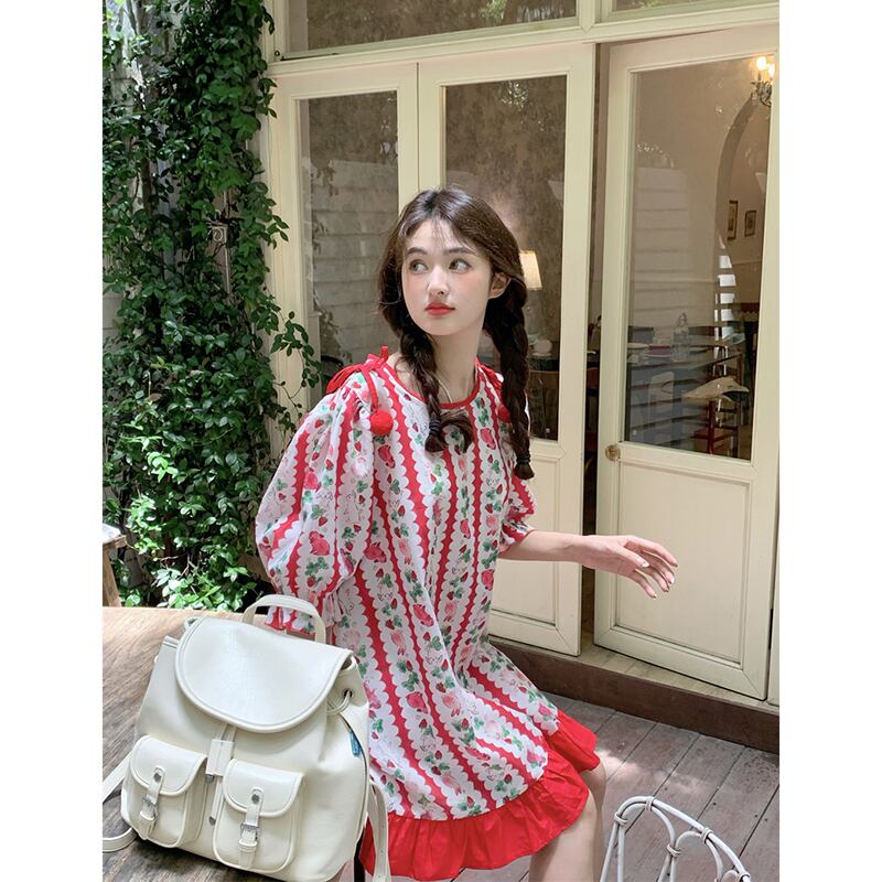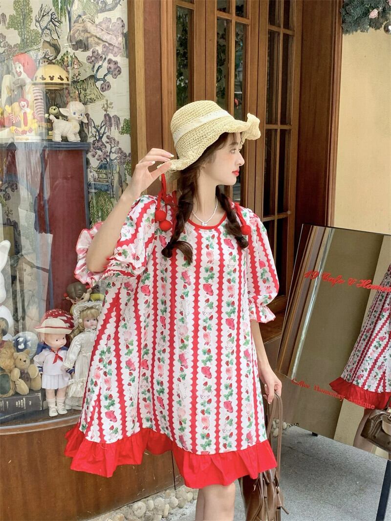 牧歌的なスタイルのドレスの女性の 2023 夏の新デザインのファーボールレースルーズ 5 分袖スカート サマー 夏物 missk81790265657