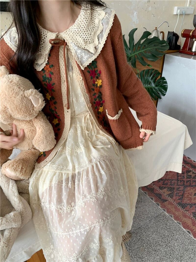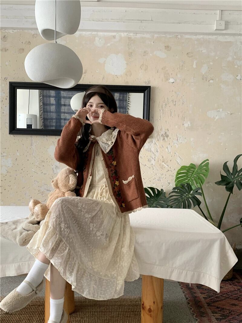 色:キャラメルセーター,レースドレス