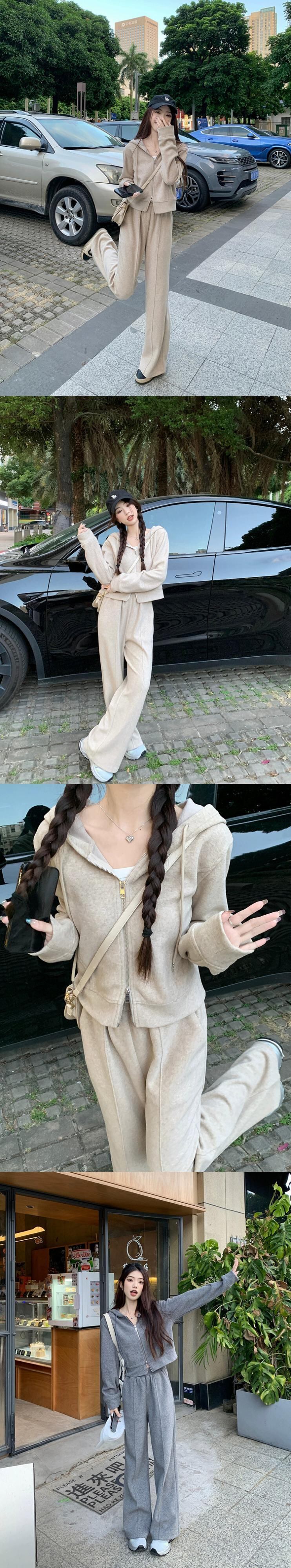 ミルクベルベットのフード付きショートカジュアル長袖スウェットシャツジャケットワイドレッグパンツ女性の秋の 2023 新しいファッションスーツ ロング オータム 秋物 missk41135491825