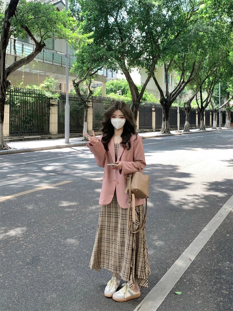 色:ピンクのスーツ,サスペンダースカートをチェック