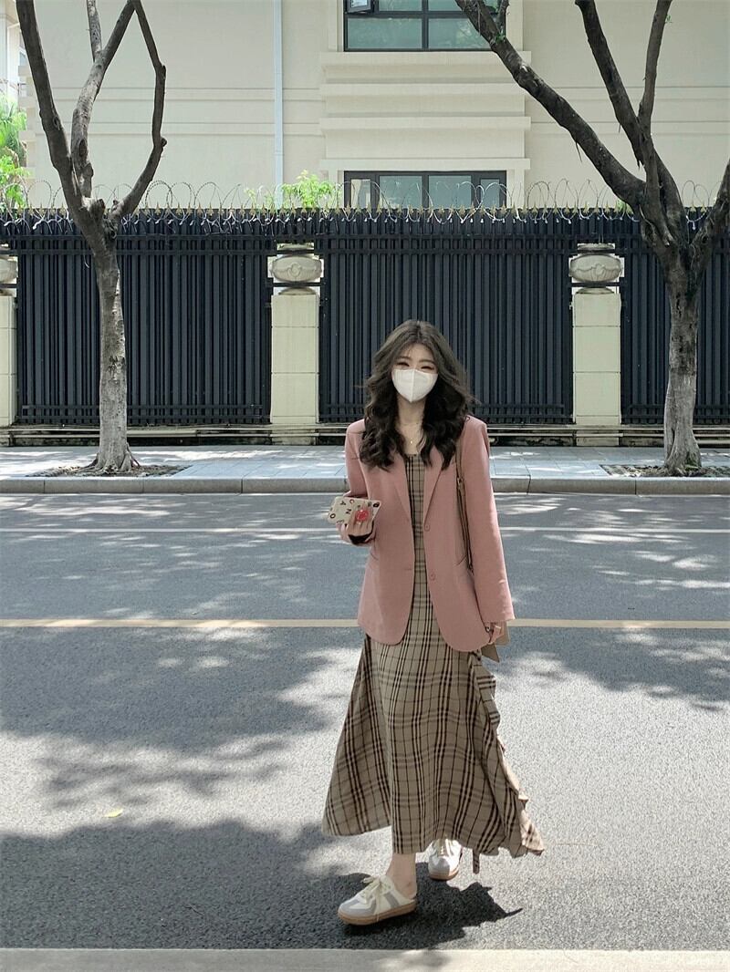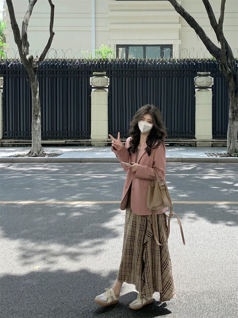 ピンクのブレザー女性の2023年秋の新しいスタイルの甘じょっぱいルーズミッドレングス長袖小さいスーツ ロング 大人ガーリー スウィート キュート カジュアル オータム 秋物 missk88141526611