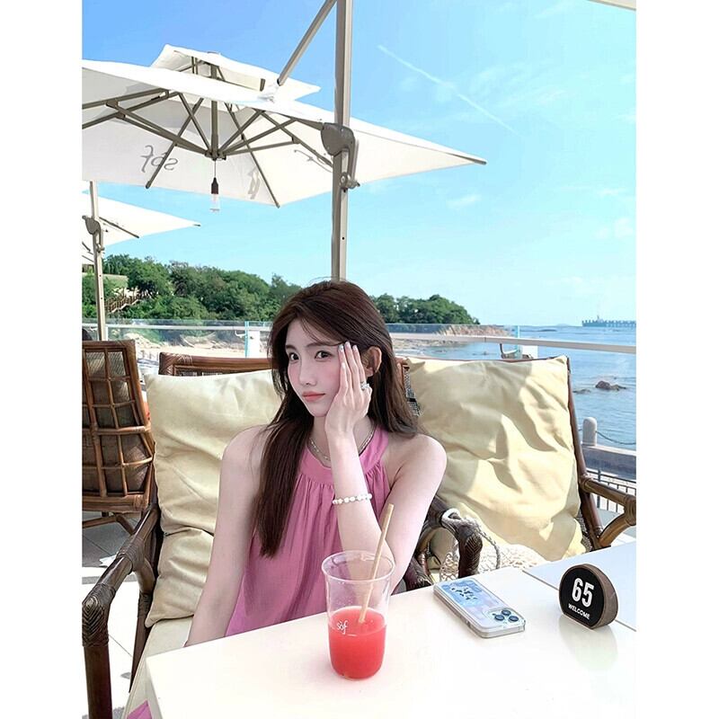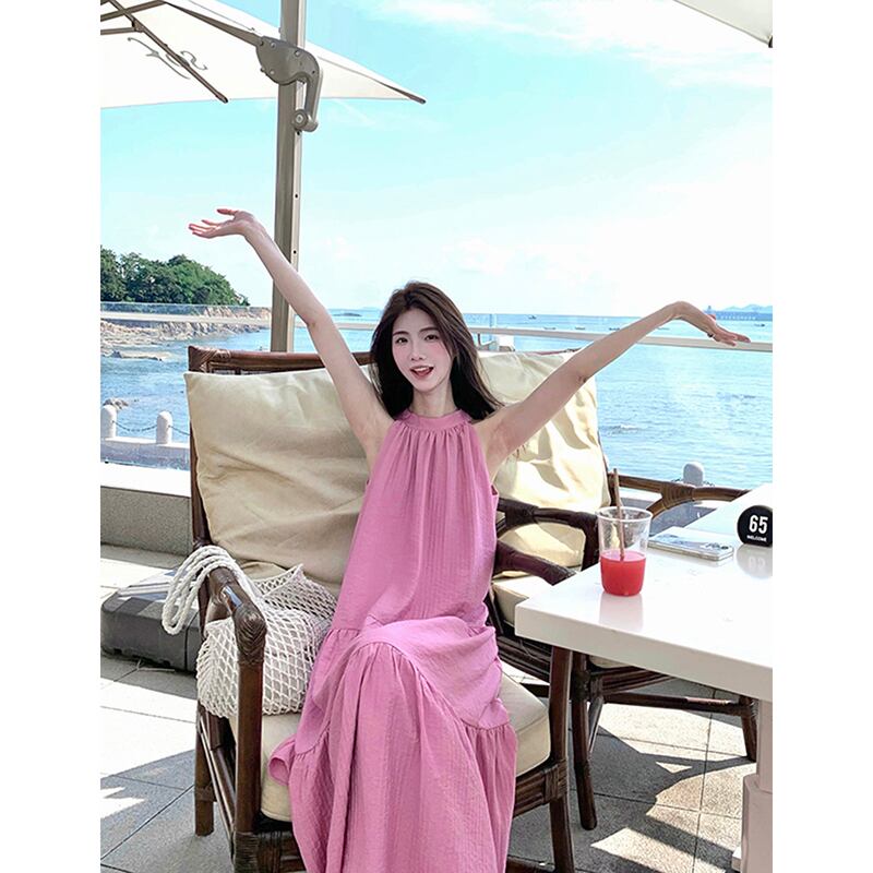 2023 夏新スタイルシンプルなルーズスリムデザイン蝶ネクタイノースリーブホルターネックドレスロングスカート女性 リボン サマー 夏物 missk83436518738