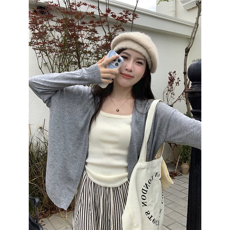 薄い怠惰なスタイルの長袖セーターの女性の秋スタイルの新しいルーズファッション多目的無地カーディガントップトレンディ ロング オータム 秋物 ソリッドカラー missk21438547863