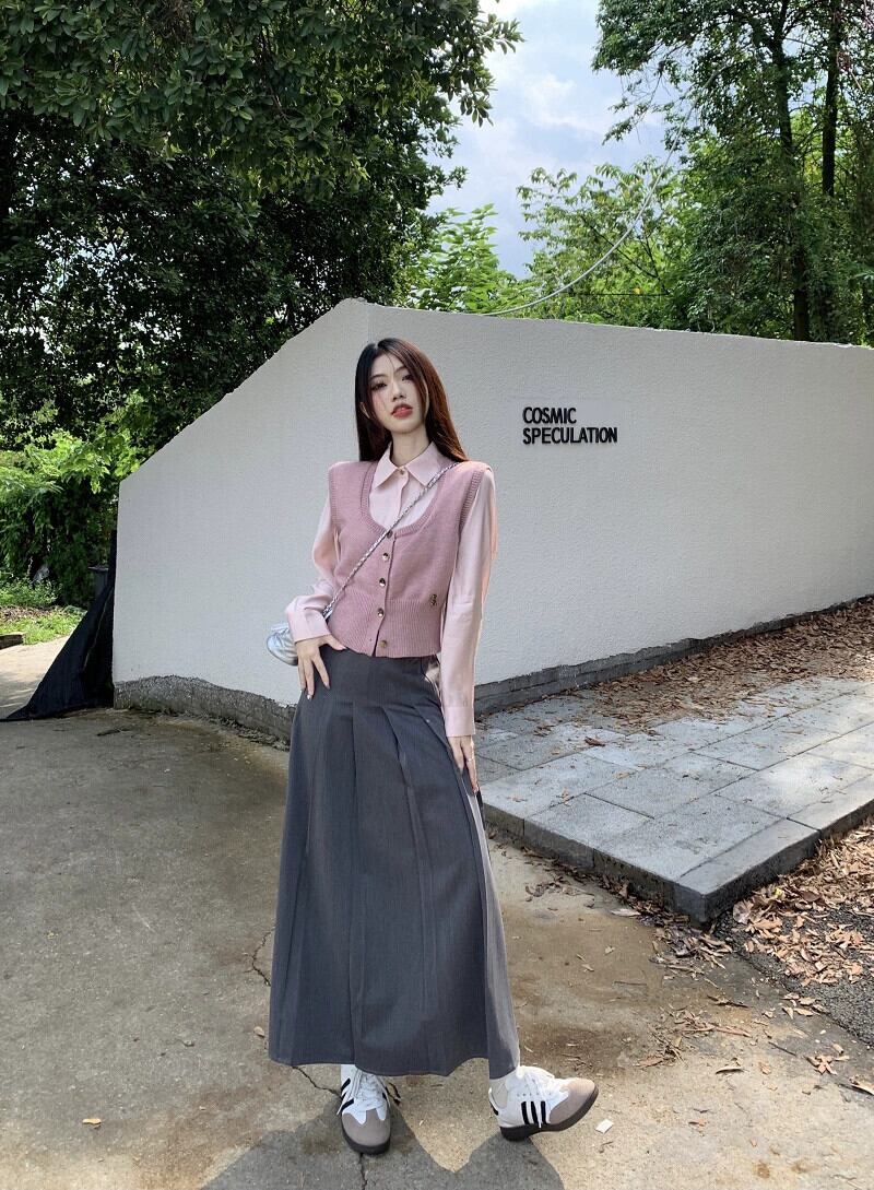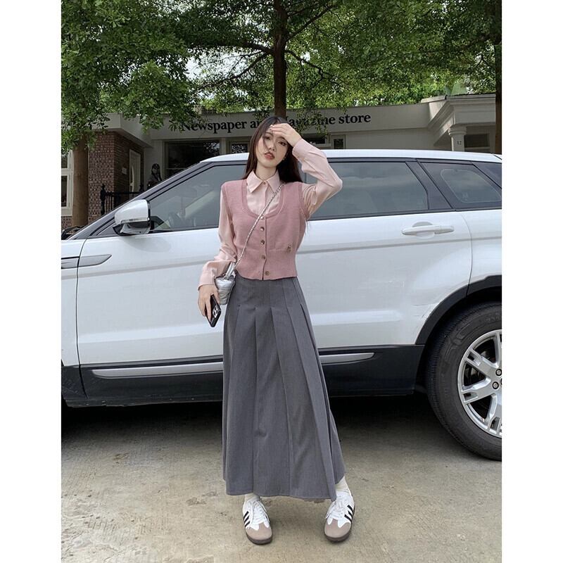 スタイルウエスト痩身ニットベストシャツプリーツハーフレングススカート女性秋 2023 新しいファッションスーツ オータム 秋物 missk67732033840
