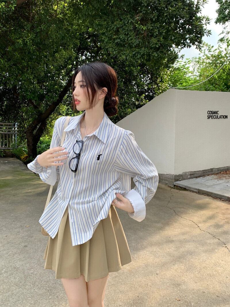 ストライプ長袖シャツ女性の 2023 秋の新しいフレンチニッチデザインのポロカラールーズでシックなシャツ ロング オータム 秋物 missk2509289281