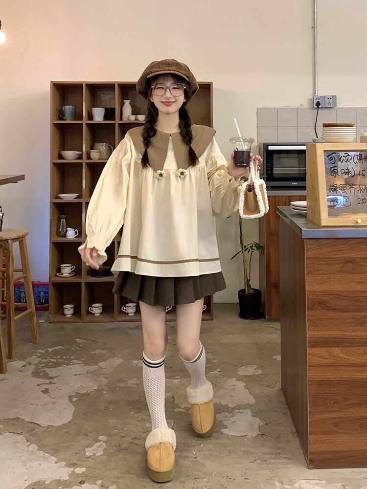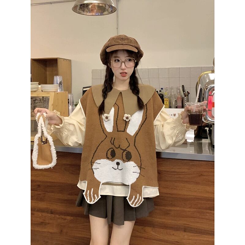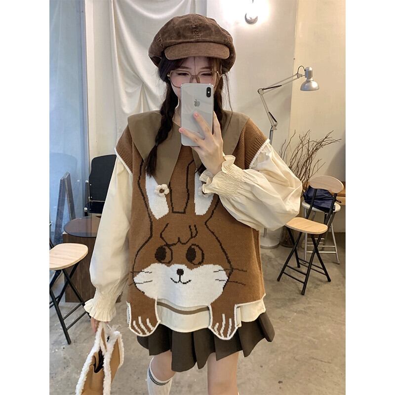 人形襟シャツデザインかわいい老化ニットベストベスト女性秋 2023 新しいファッションツーピースセット 大人ガーリー スウィート キュート カジュアル オータム 秋物 missk71976196477
