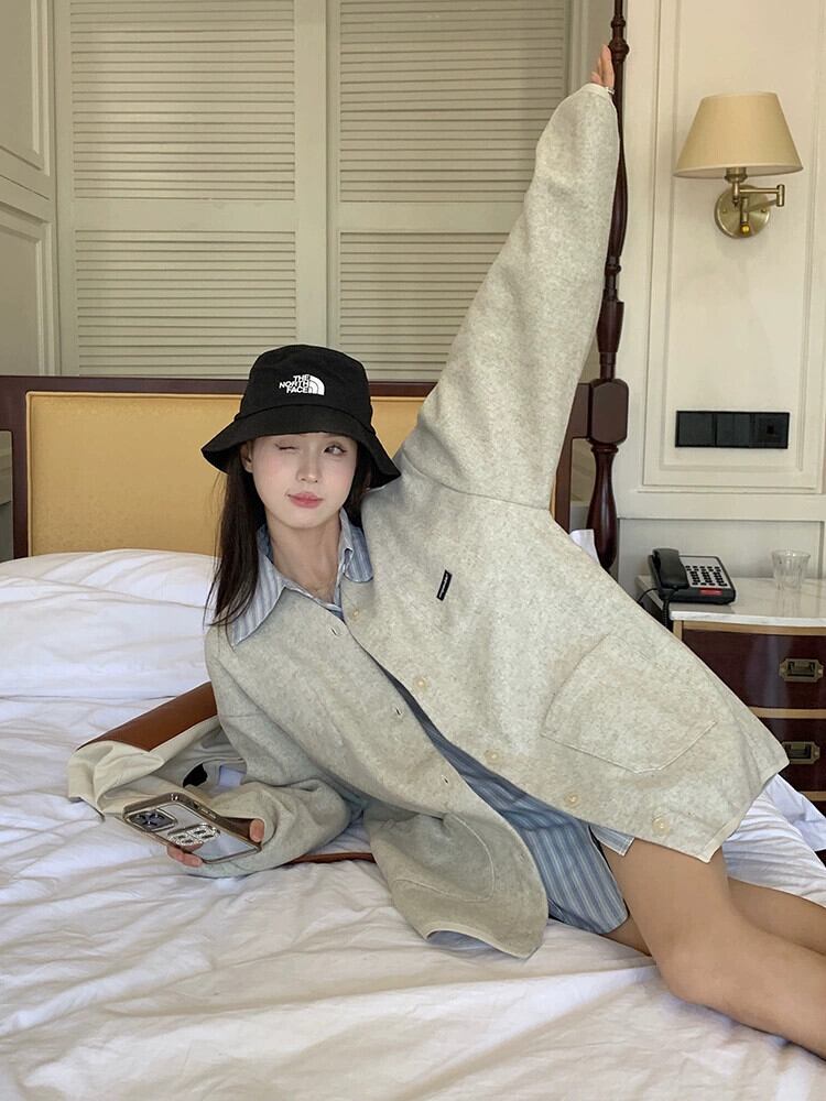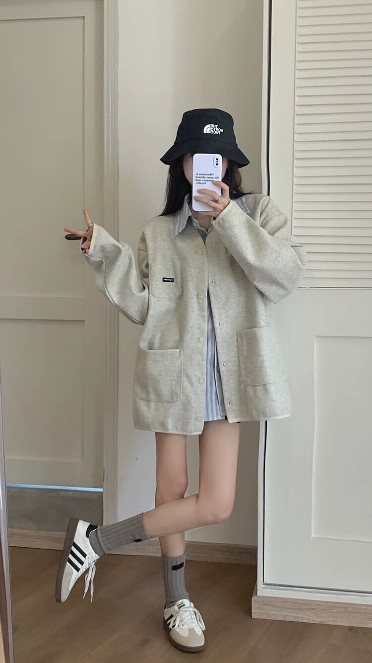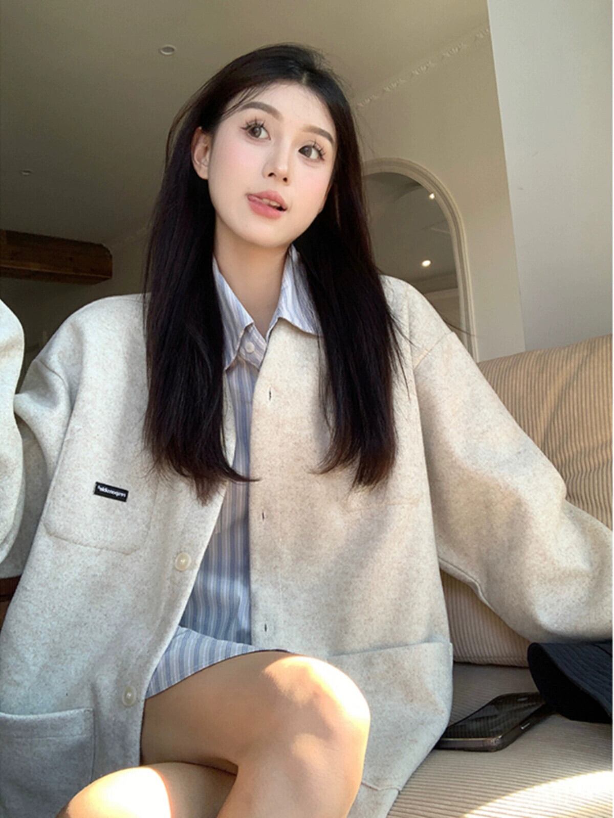 レトロ V ネック長袖ジャケット女性秋 2023 新しいルーズミッドレングスシングルブレストカップルカーディガントレンディな ロング オータム 秋物 Vネック missk83517706917