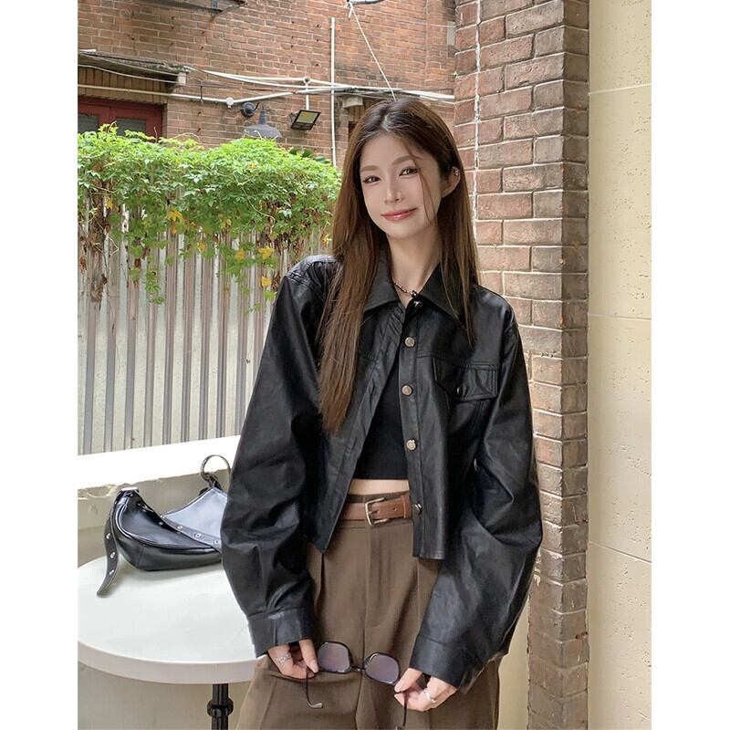 レザージャケットの女性の秋バージョン 2023 新しいスモールハイエンドショートルーズ長袖モーターサイクルジャケット ロング オータム 秋物 missk56472913941