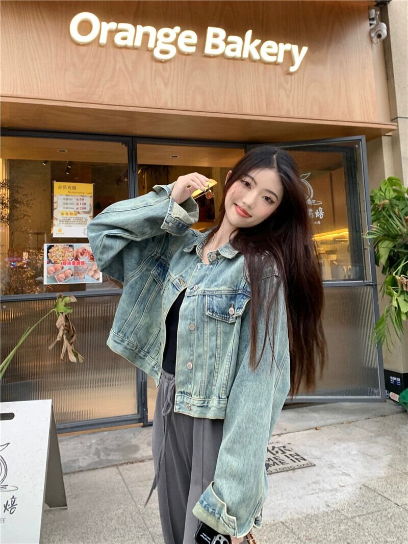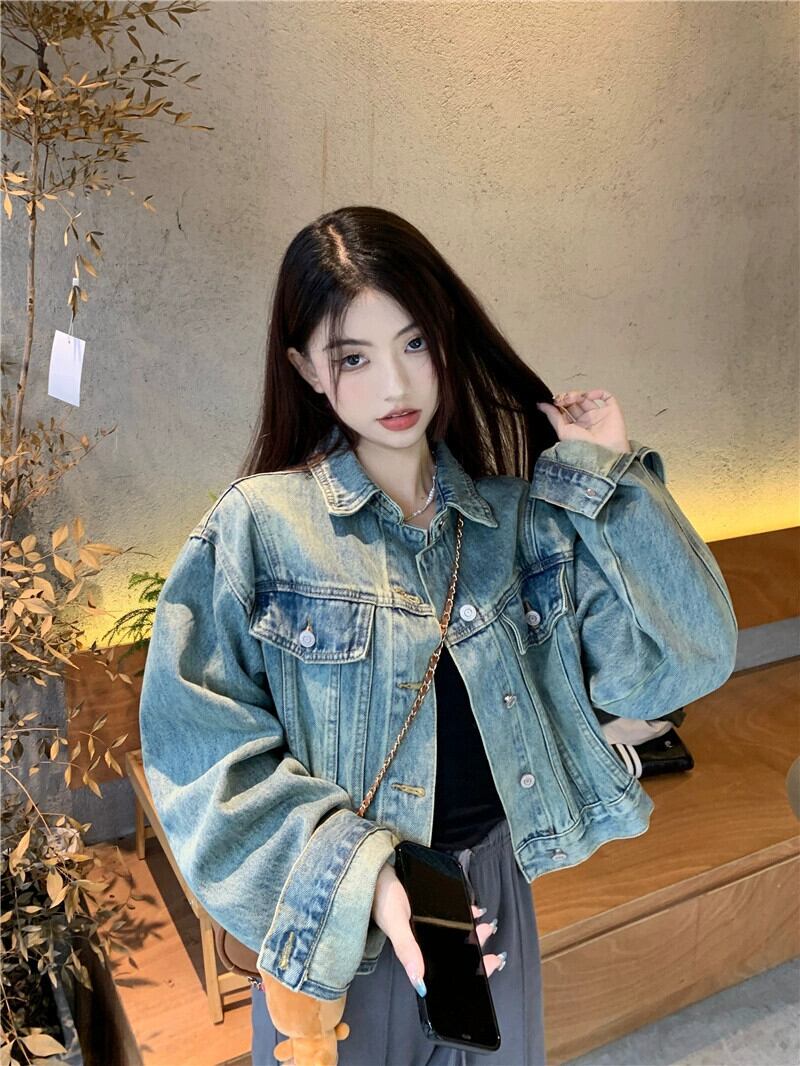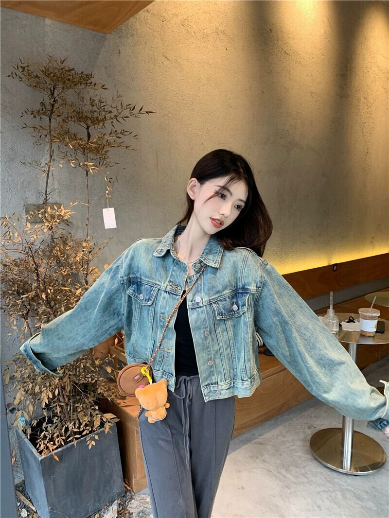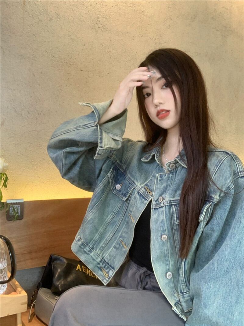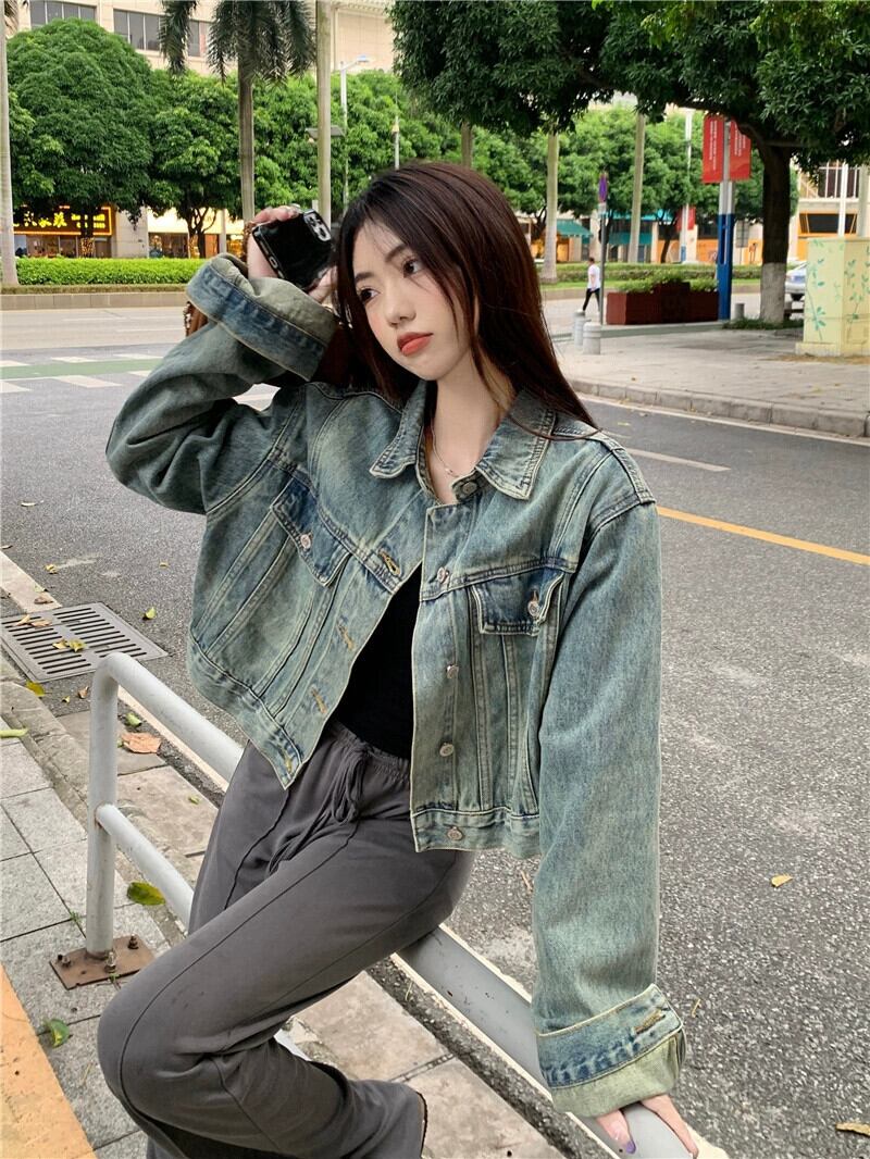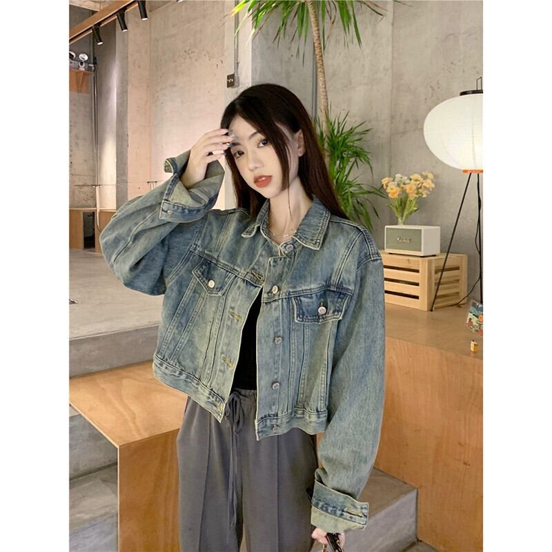 レトロウォッシュブルーデニムジャケット秋2023新デザインニッチスパイシークール気質ショートトップ女性 オータム 秋物 missk51184318419