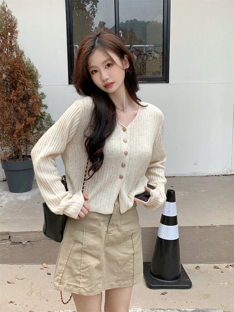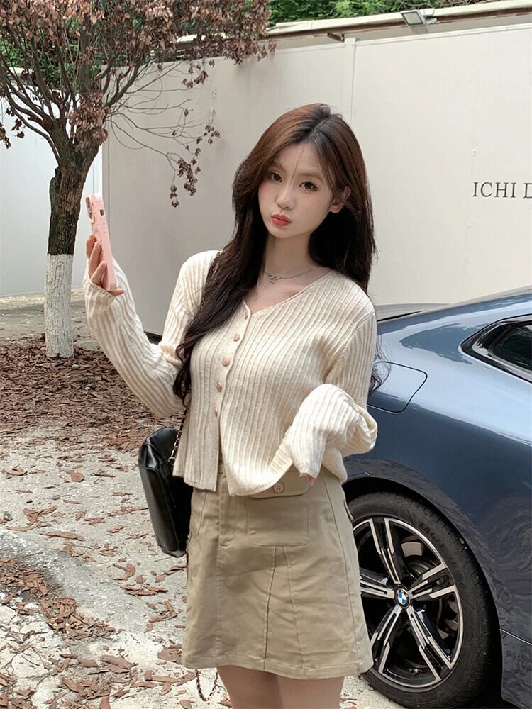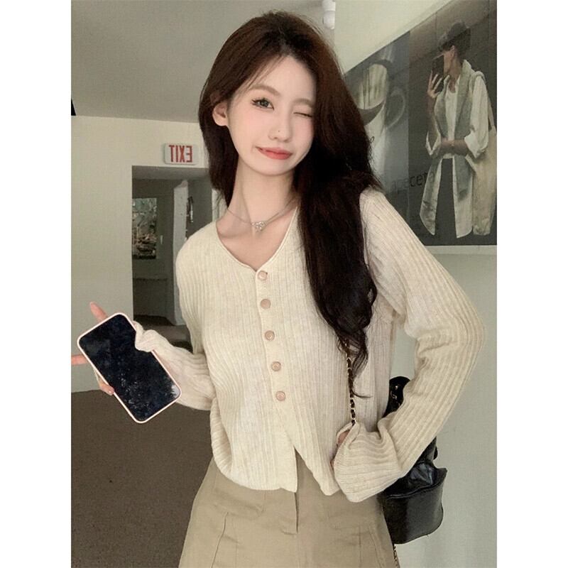 薄手のVネック長袖セーターレディース2023秋バージョン新しい雰囲気ゆったりショートアウターカーディガン ロング オータム 秋物 missk60865320335