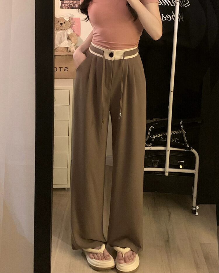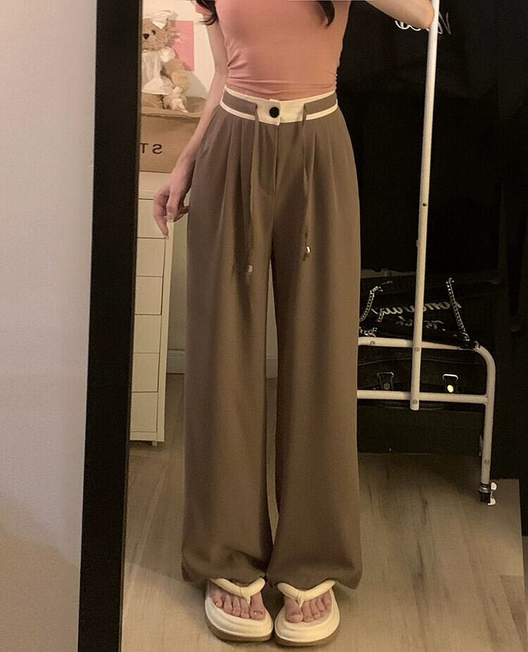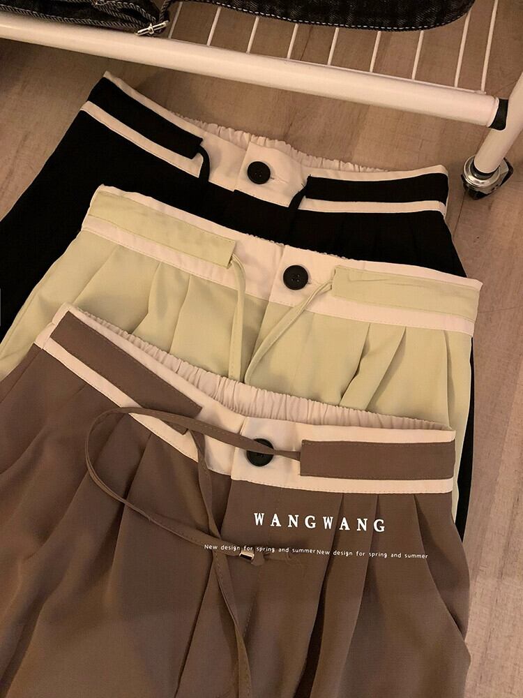 2023 夏の新カジュアル弾性ウエストドレープコントラストカラー多用途デザインストレートスリム巾着スーツパンツ女性 エラスティック 伸縮 サマー 夏物 missk8933670629