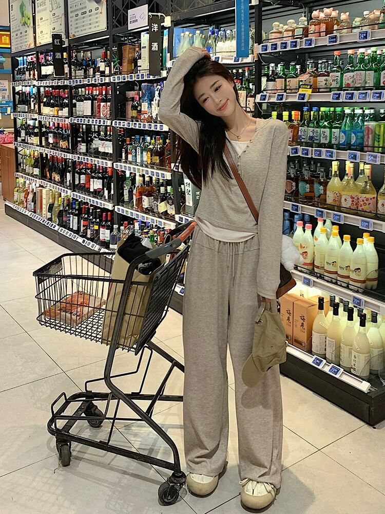 色:オートミールパンツ,カーボングレーパンツ,オートミールトップ(フェイク2個),カーボングレートップ(フェイク2枚)
