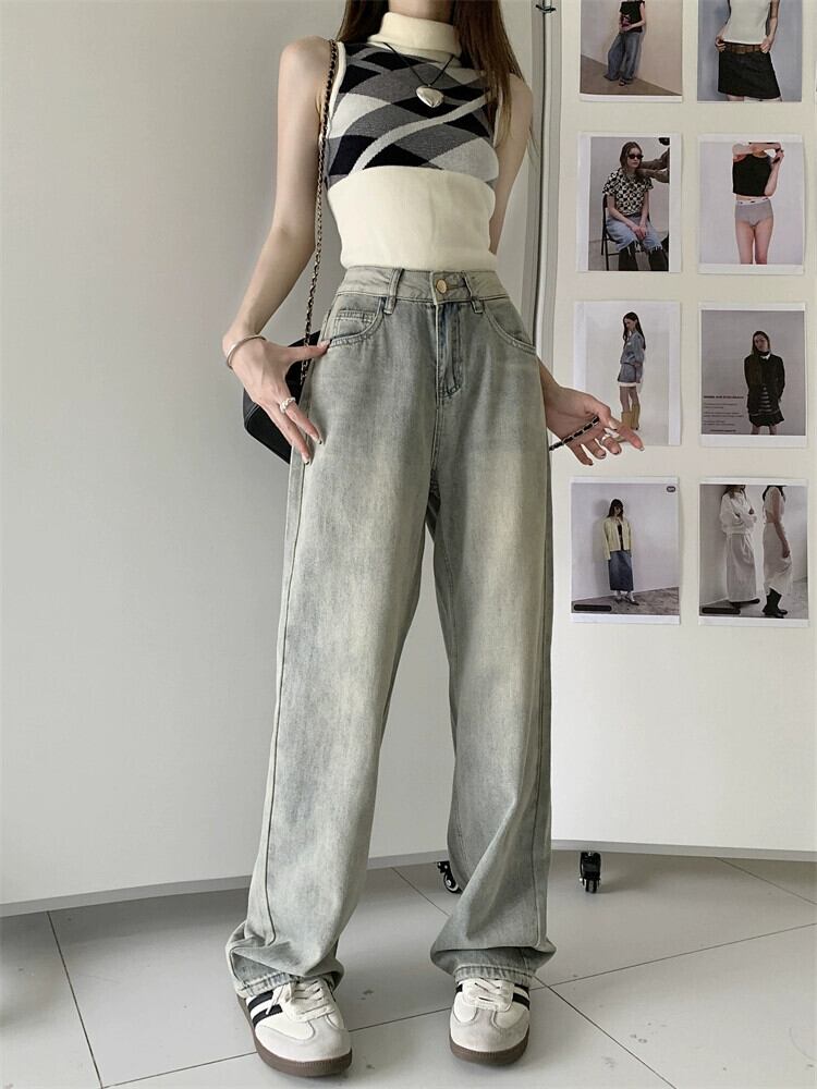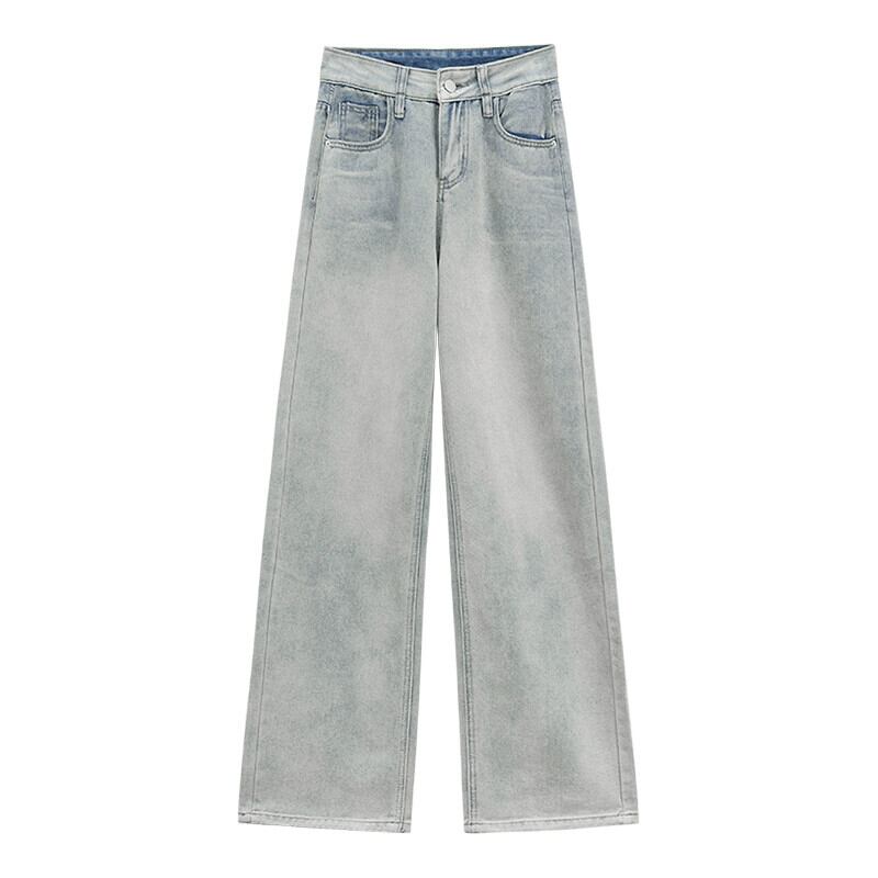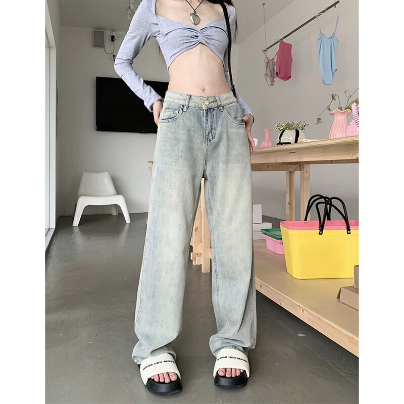 2023 年秋の新しいレトロなハイウエスト スリム ストレートレッグ多目的ワイドレッグ パンツの女性のウォッシュ加工ジーンズ オータム 秋物 missk35716010962