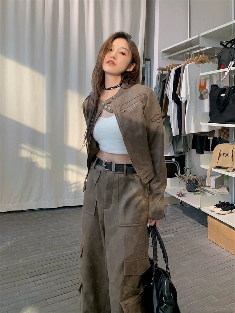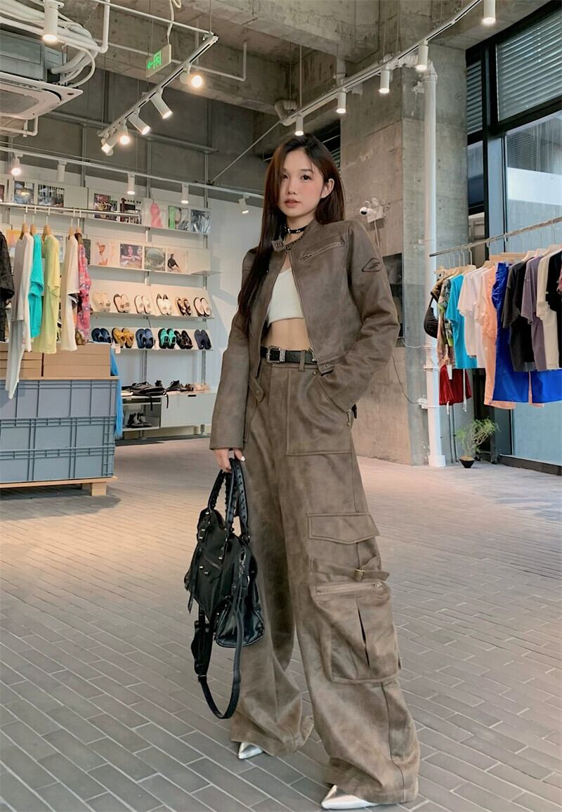 アメリカンレトロオートバイジャケット女性 2023 秋の新しいストリートデザインショート長袖レザージャケットトレンディな ロング オータム 秋物 missk94462302296