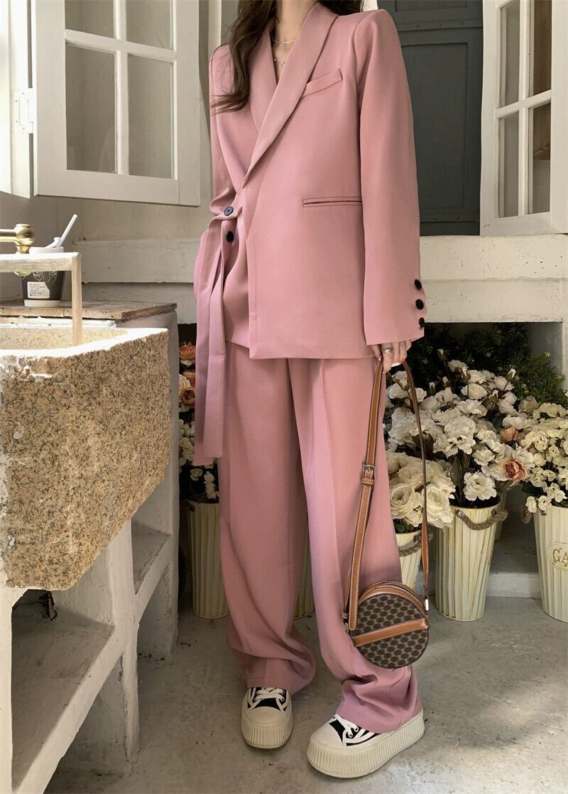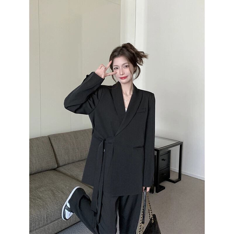 ニッチデザインレースアップハイエンド長袖スーツジャケットズボン女性秋 2023 新しいファッションツーピースセット ロング オータム 秋物 missk23179050829