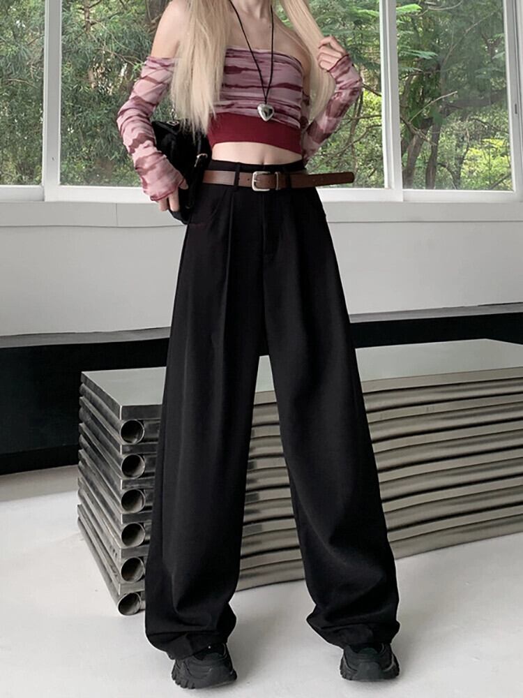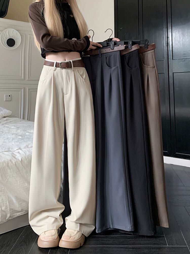 Drapey カジュアルパンツ女性 2023 秋の新しいスタイルのレトロなハイウエストスリム多用途ルーズワイドレッグストレートパンツロングパンツ オータム 秋物 missk7074361074