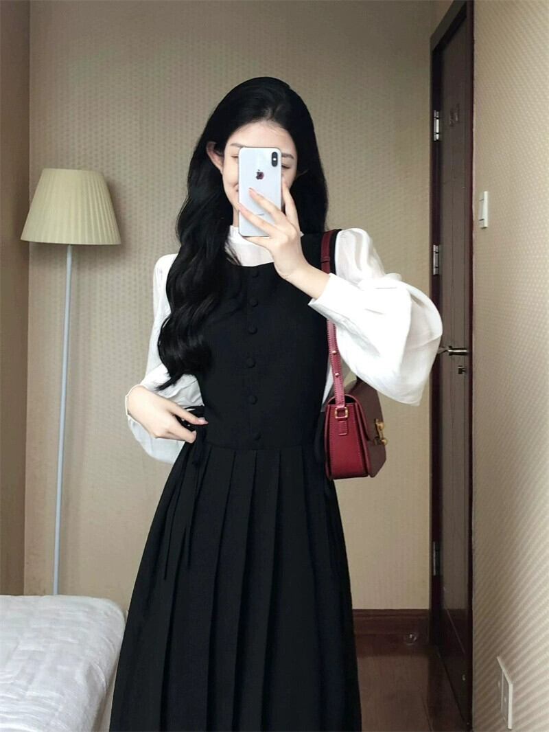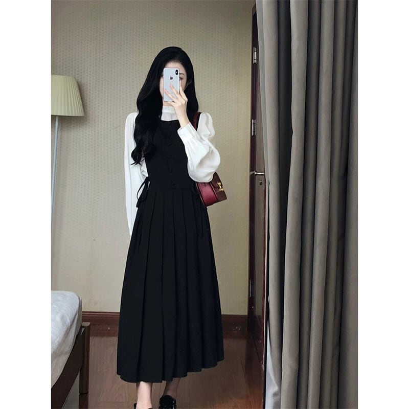 フレンチヘップバーンスタイルのベストドレス女性秋2023新しいスタイルウエスト痩身ミッドレングスノースリーブプリーツスカート オータム 秋物 missk27361395975