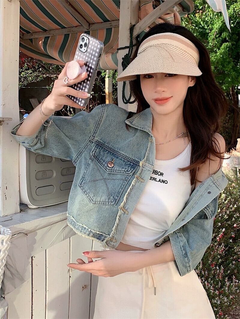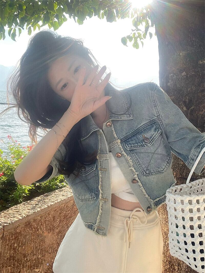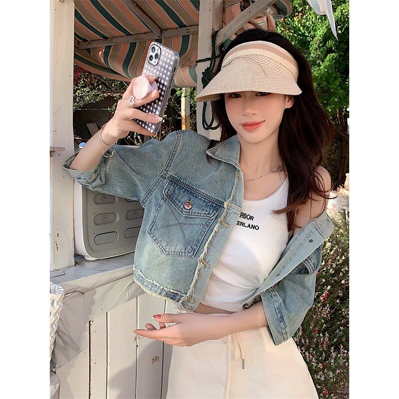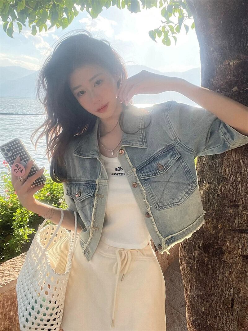 レトロラペルショートデニムジャケット女性秋 2023 新しいスタイルローエッジデザインニッチ多用途半袖トップ オータム 秋物 missk96275757999