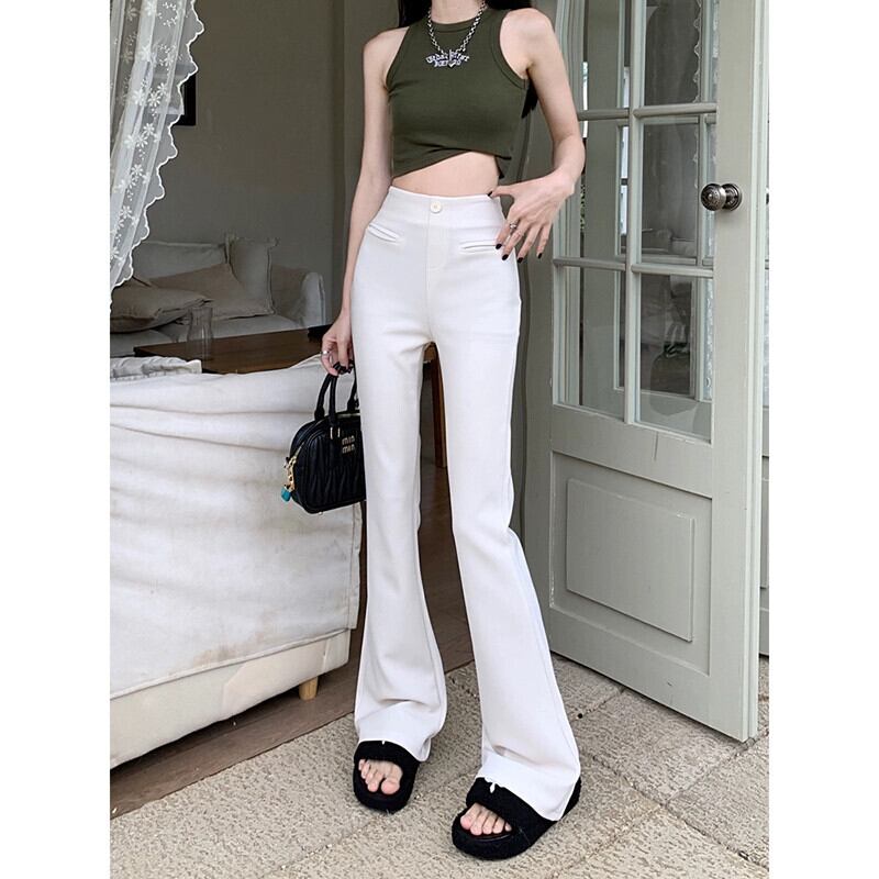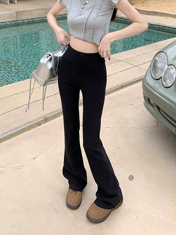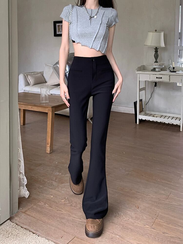 黒ブーツカットパンツ女性夏バージョン 2023 新しいハイウエストスリム万能デザインカジュアルパンツフレアパンツ レッド ブラック サマー 夏物 missk23279990209