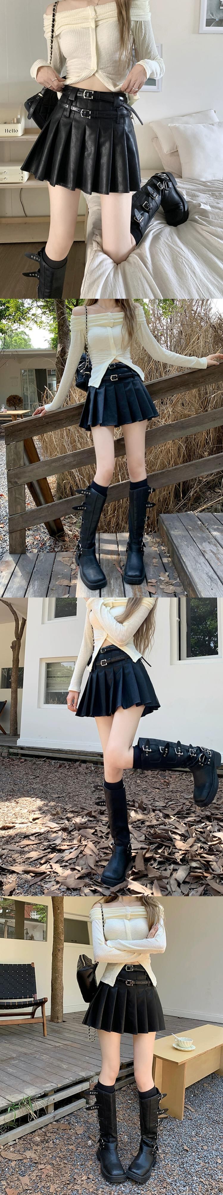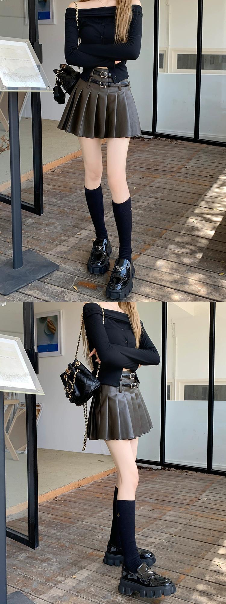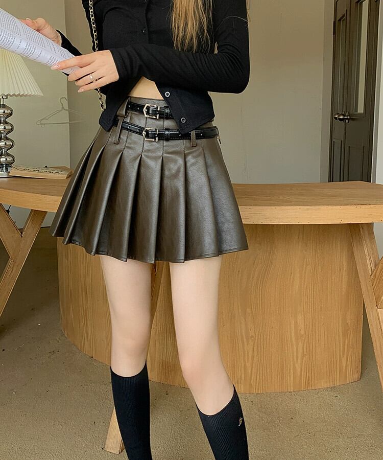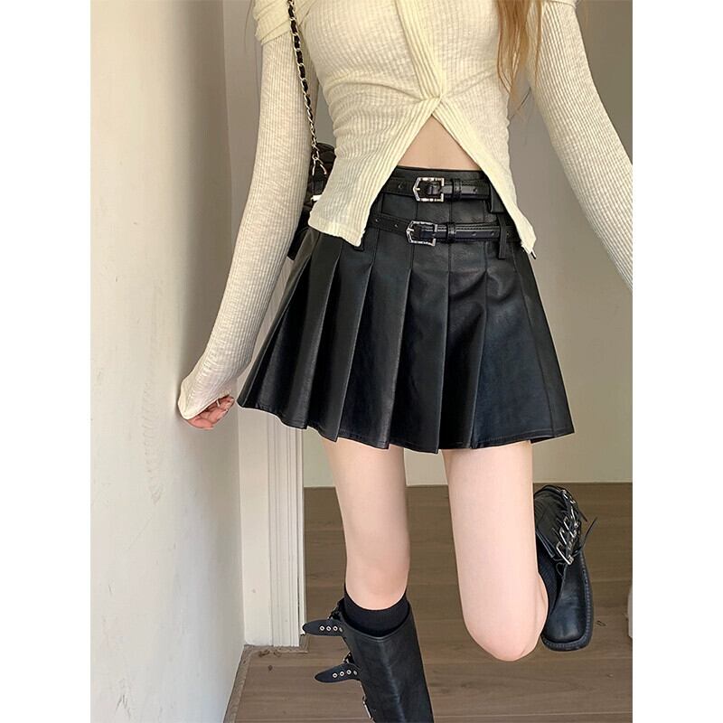 Hot Girl プリーツスカート レディース 秋 2023 ダブルベルト パーソナライズされたウエスト 万能レザースカート オータム 秋物 ハーネス missk49608649718
