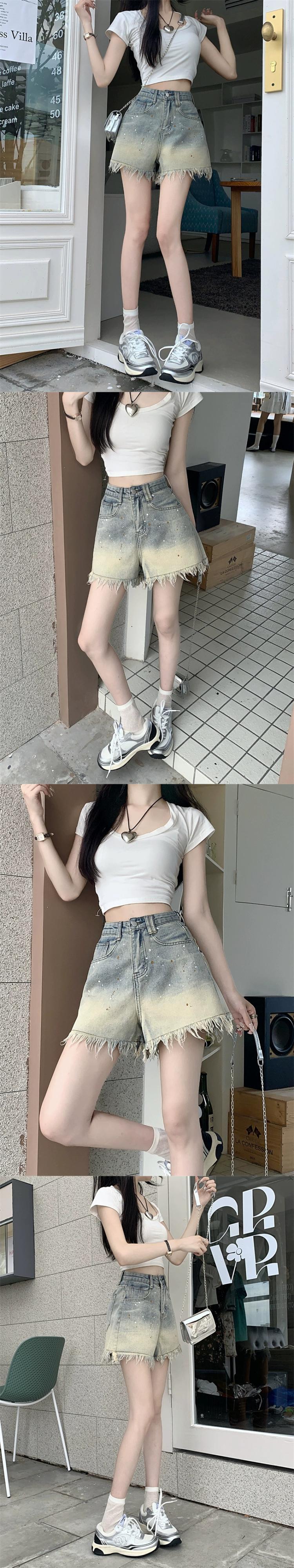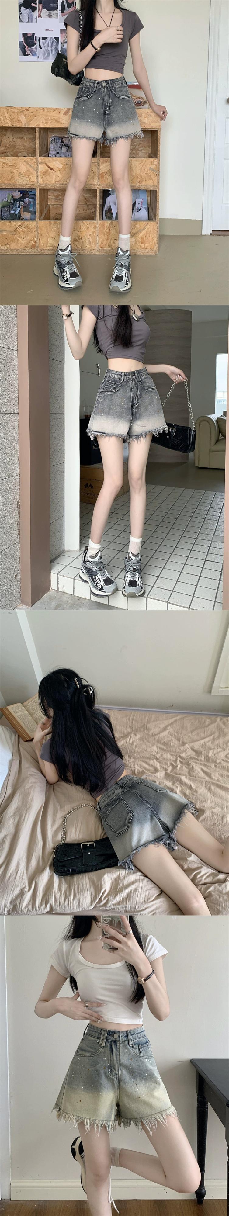 デニムショーツ レディース 夏バージョン 2023 グラデーションカラー ウエストスリム ローエッジ ワイドレッグ Aラインパンツ サマー 夏物 ブルマー ワイドパンツ missk45503656178