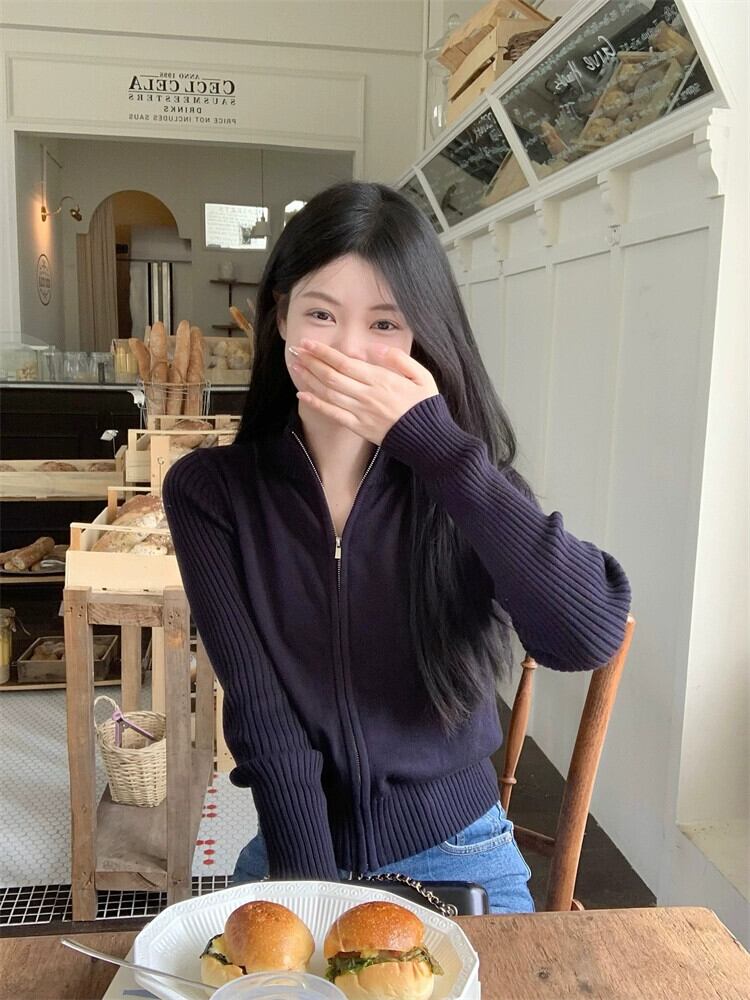 2023 秋の新スタイルスリムで多用途のシンプルな気質スタンドカラージッパーセータージャケット女性 オータム 秋物 missk62849680287