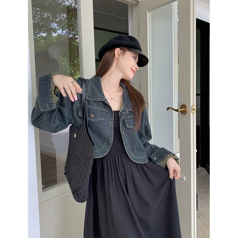 レトロ感のあるラペル長袖デニムジャケットの女性秋の新デザインのダメージ加工ルーズ万能ショートトップトレンディ ロング オータム 秋物 missk51922355516