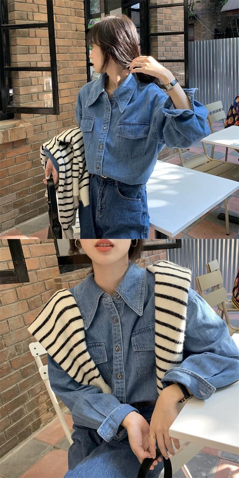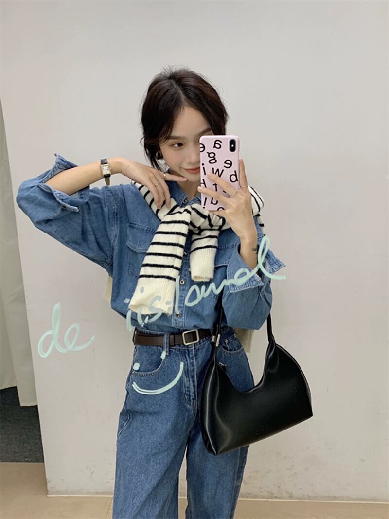レトロラペルデニムジャケットの女性の秋冬 2023 新しい薄いルーズミッドレングスアウターウェア塩長袖トップ ロング オータム 秋物 ウィンター 冬物 missk43124578690