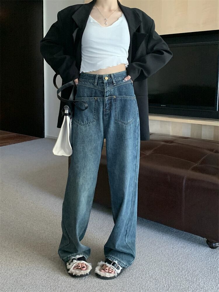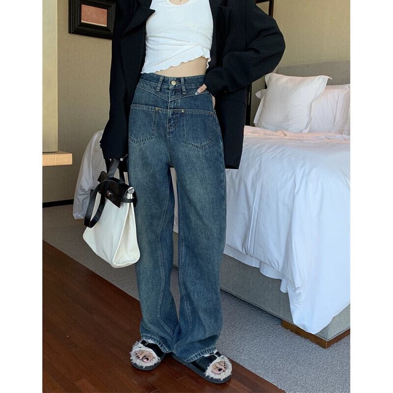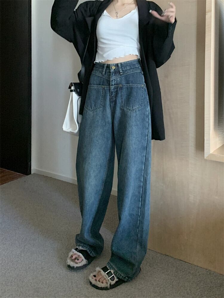 ベルベット肥厚ルーズジーンズ女性夏バージョン 2023 新しいハイウエスト痩身多用途ストレートワイドレッグパンツ サマー 夏物 missk69365517536