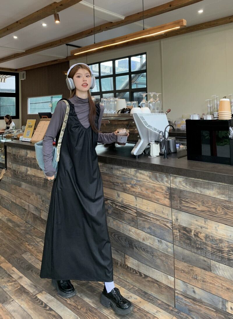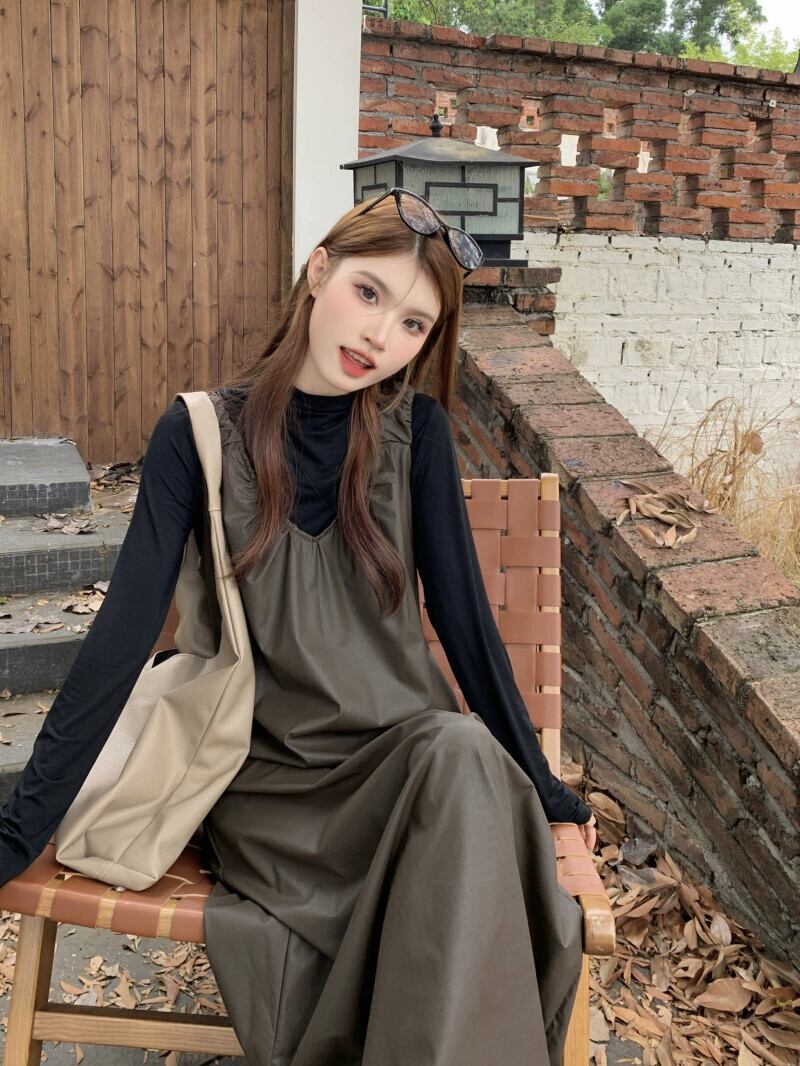 Pu レザーサスペンダードレス女性秋 2023 新しいハイエンドフレンチニッチミッドレングスノースリーブルーズスカート オータム 秋物 missk64691349615