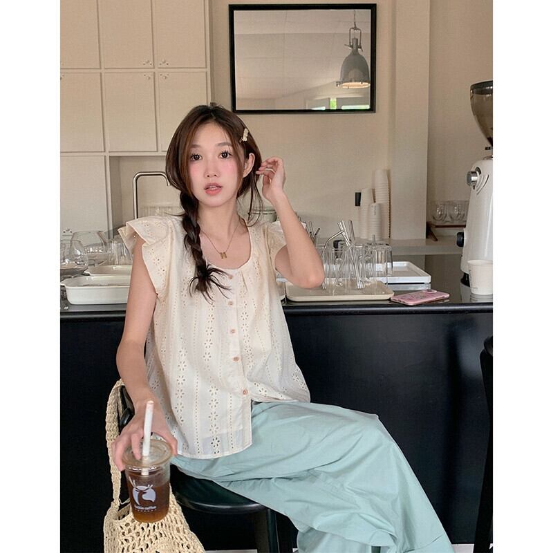 Xiaofei スリーブシャツ女性の夏 2023 新しいフレンチニッチ中空デザイン eign スタイルショートアウタートップ サマー 夏物 missk37560157333