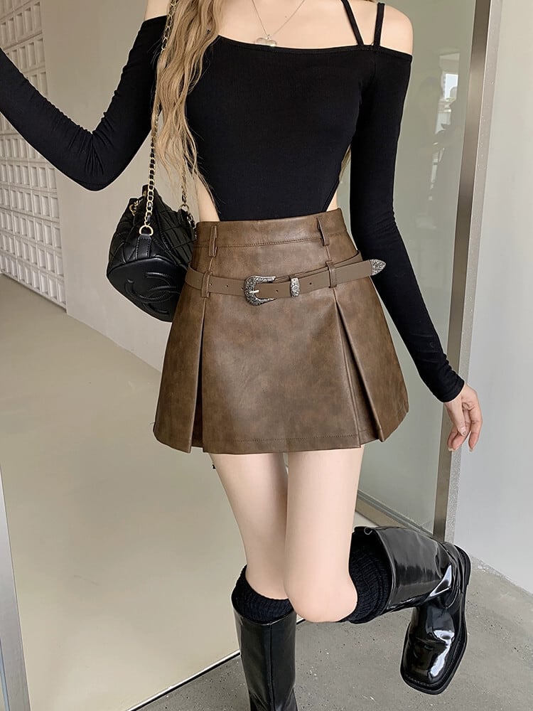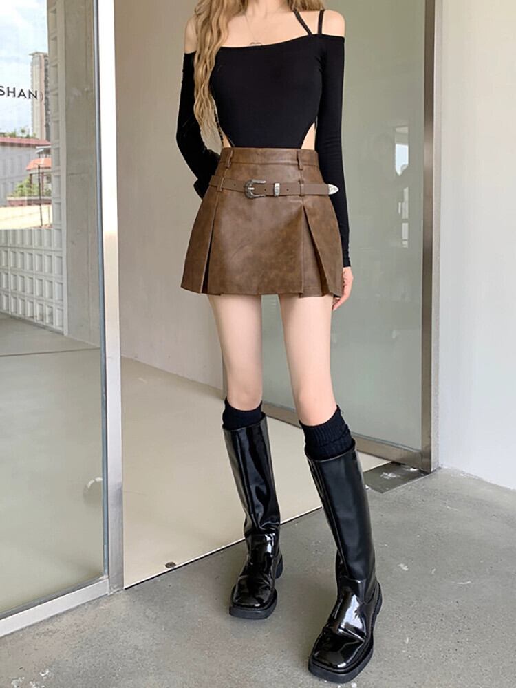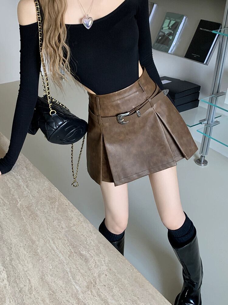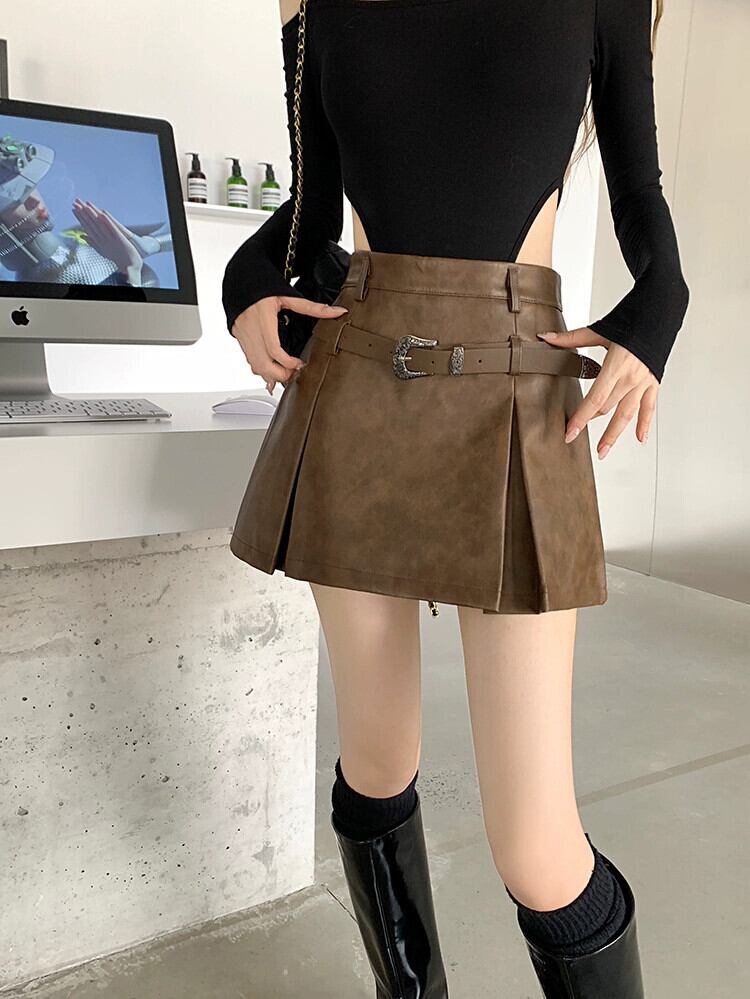 アメリカンレトロネクタイレザースカートスカート女性秋 2023 新しいハイウエストスリムデザインヒップカバー A ラインスカート オータム 秋物 Aライン missk97655462650