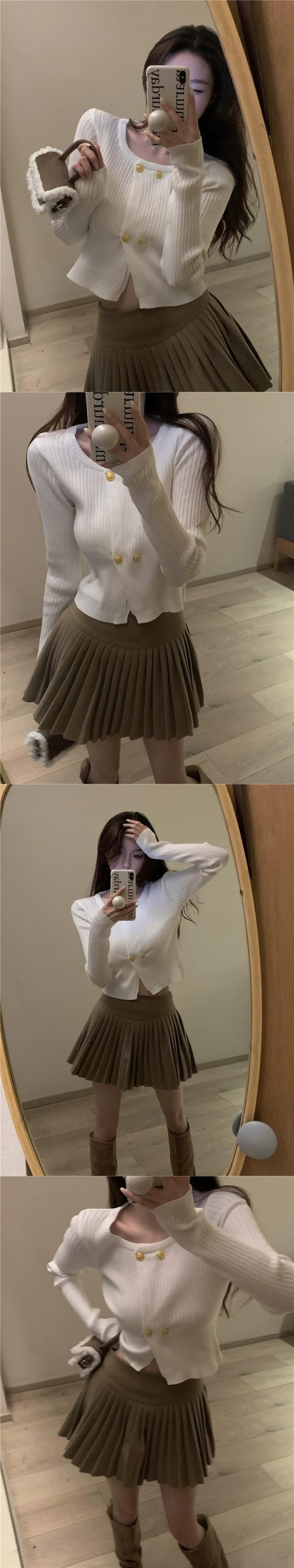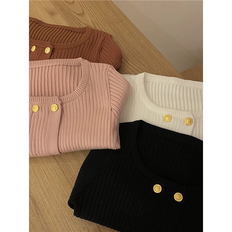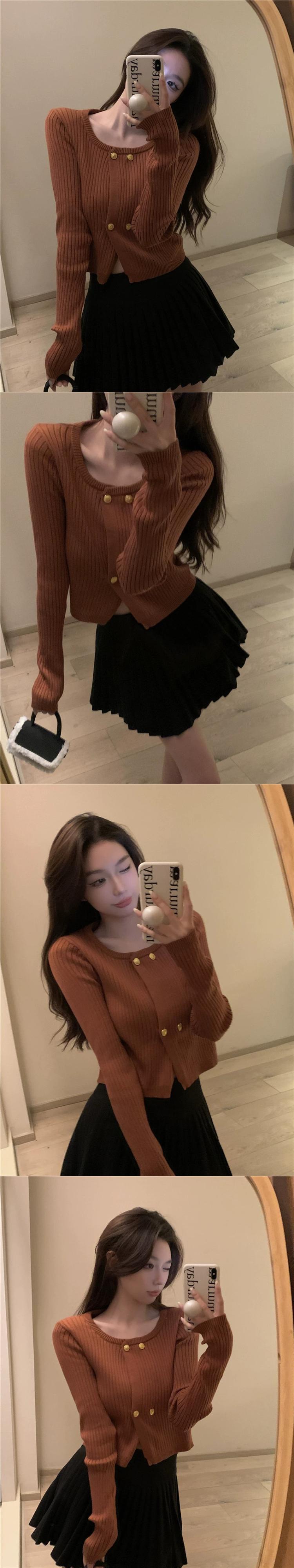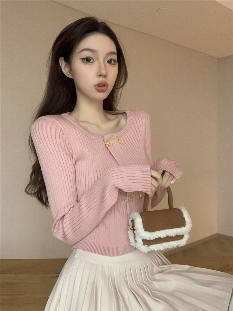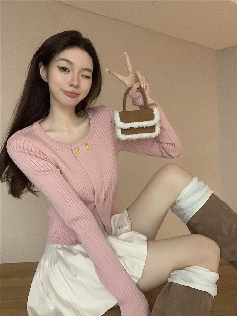 Xiaoxiangfeng スクエアネック長袖セーター女性の秋 2023 新しいスタイルのハイエンドダブルブレスト気質ショートトップ ロング オータム 秋物 スクウェア missk43096942638