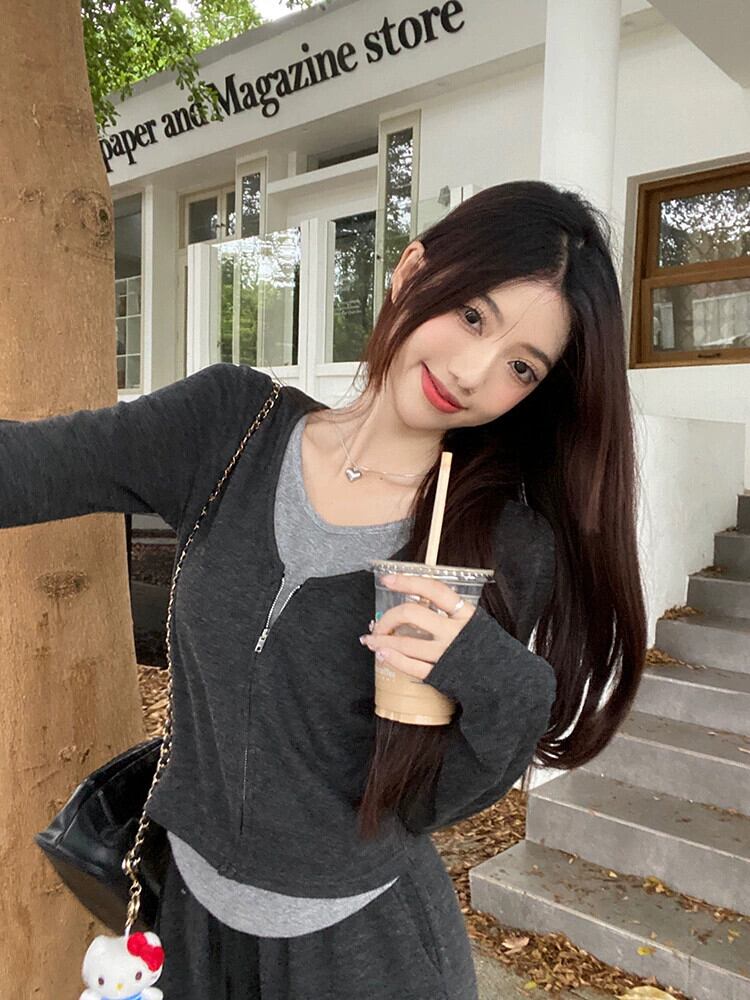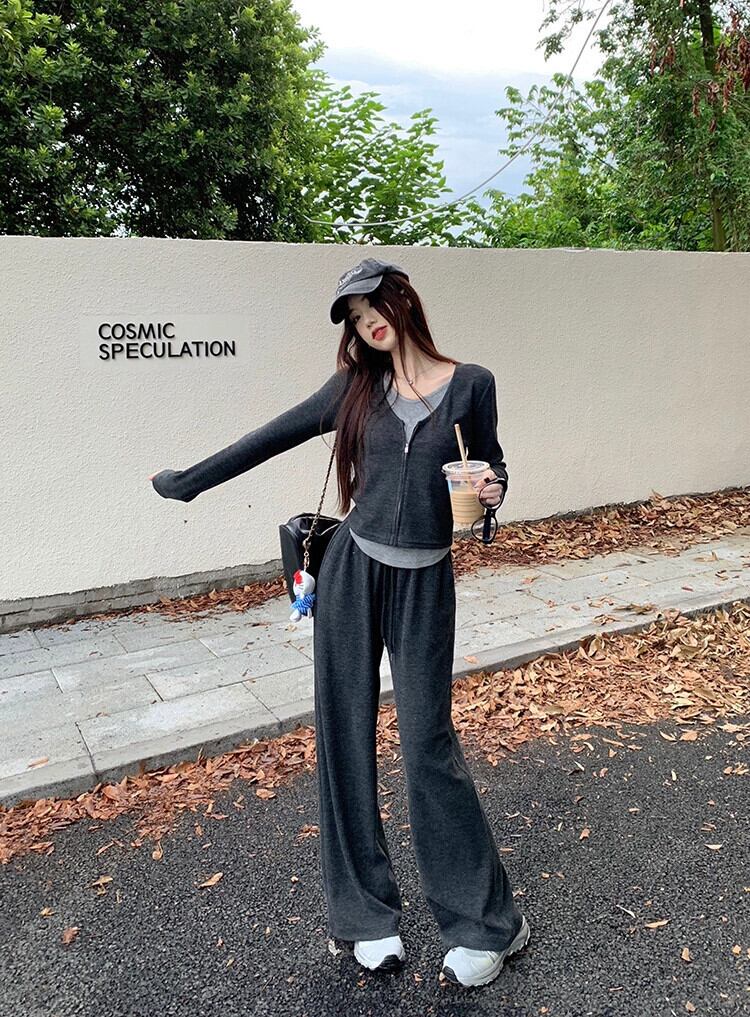 偽ツーピーススプライシングスリムスリム長袖トップスハイウエストワイドレッグパンツ女性秋 2023 新しいファッションスーツ ロング オータム 秋物 missk8672318423