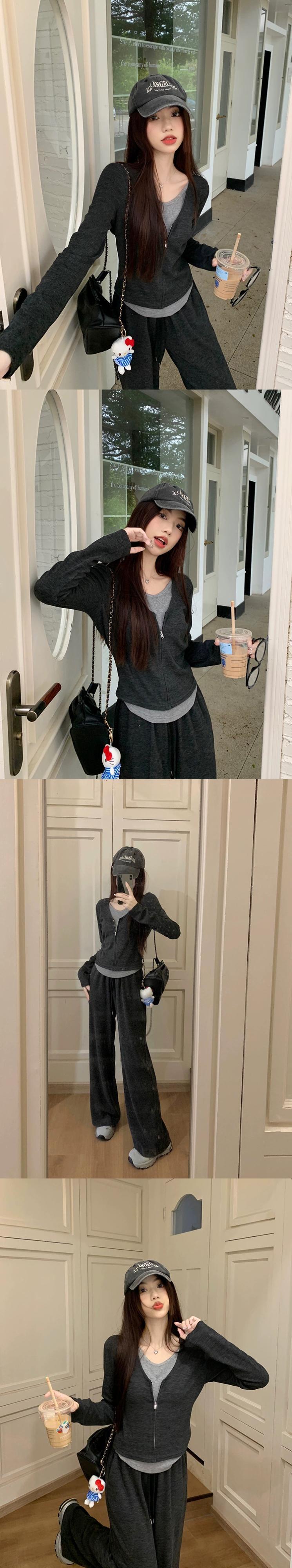 色:チャコールトップ,チャコールグレーパンツ,オートミールトップ,オートミールパンツ