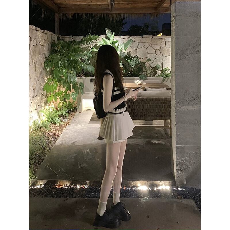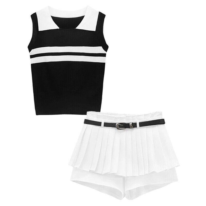 女神スタイルスーツポロカラーストライプニットベストプリーツショートスカート女性の夏の 2023 新しいファッションツーピースセット サマー 夏物 missk82940586367