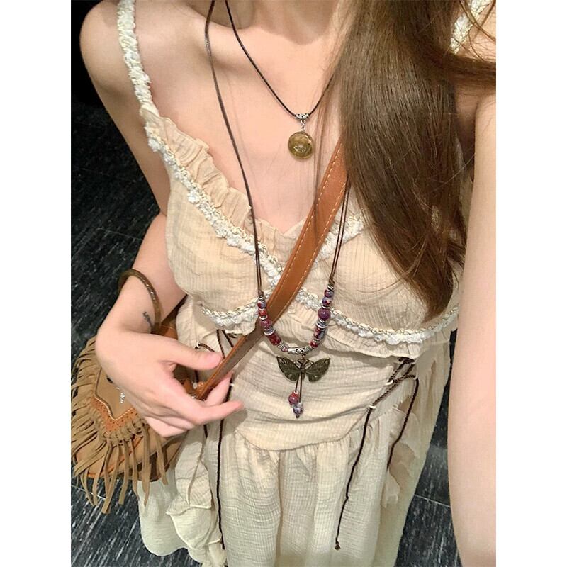 フレンチレトロサスペンダードレス女性の夏の 2023 新しいファッションデザイン菌エッジハイエンド気質ロングスカートトレンド サマー 夏物 missk92381116949