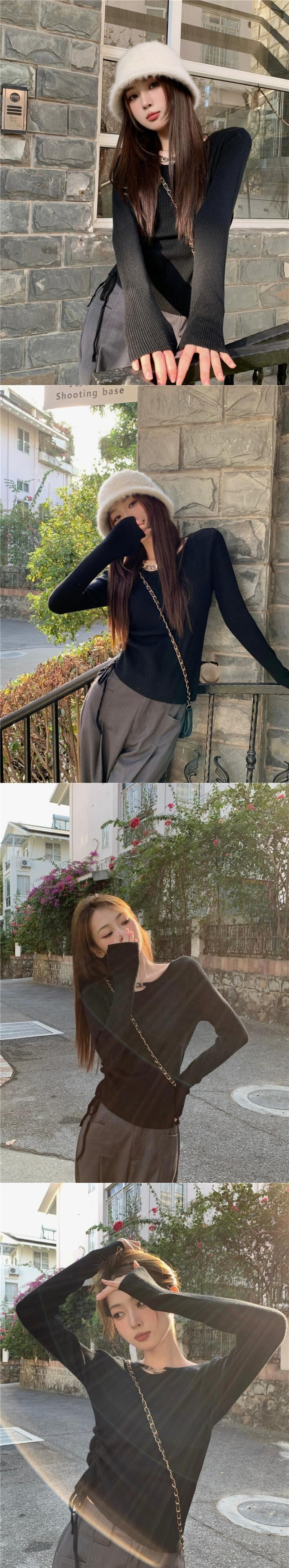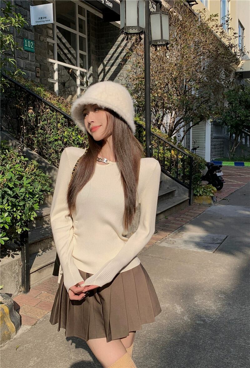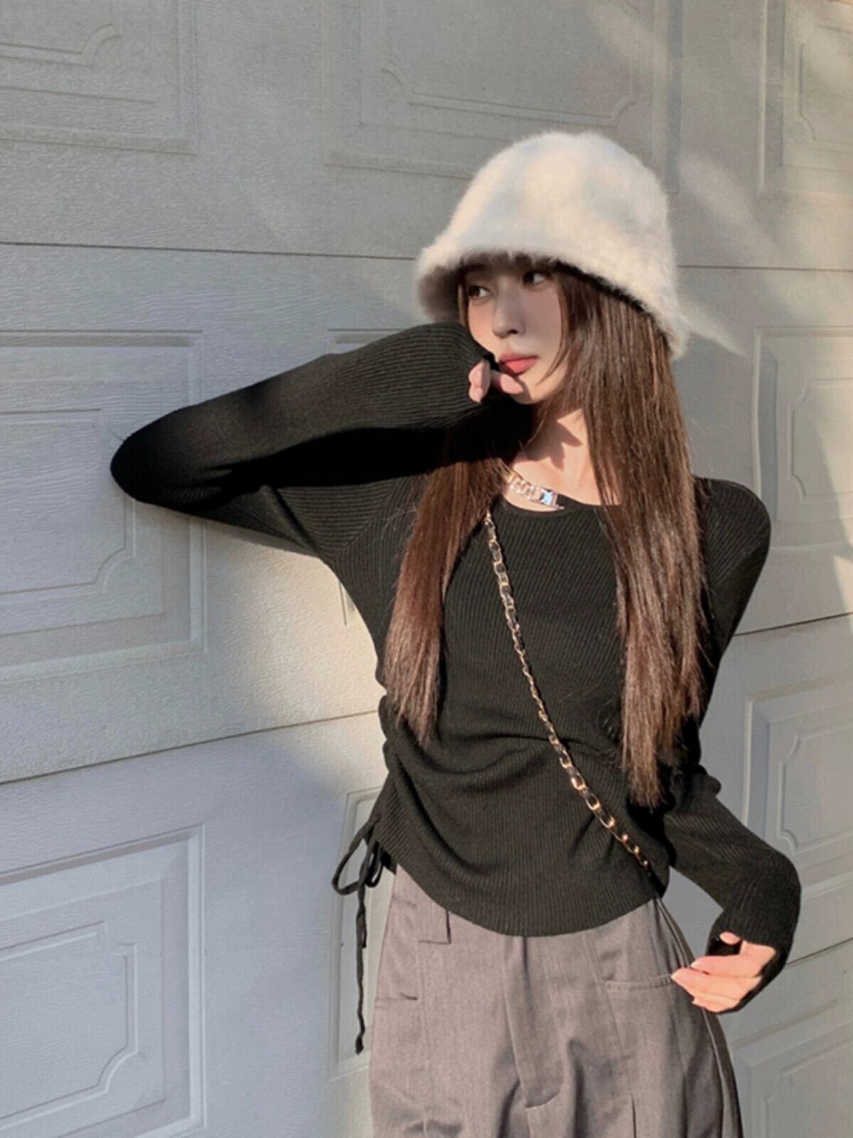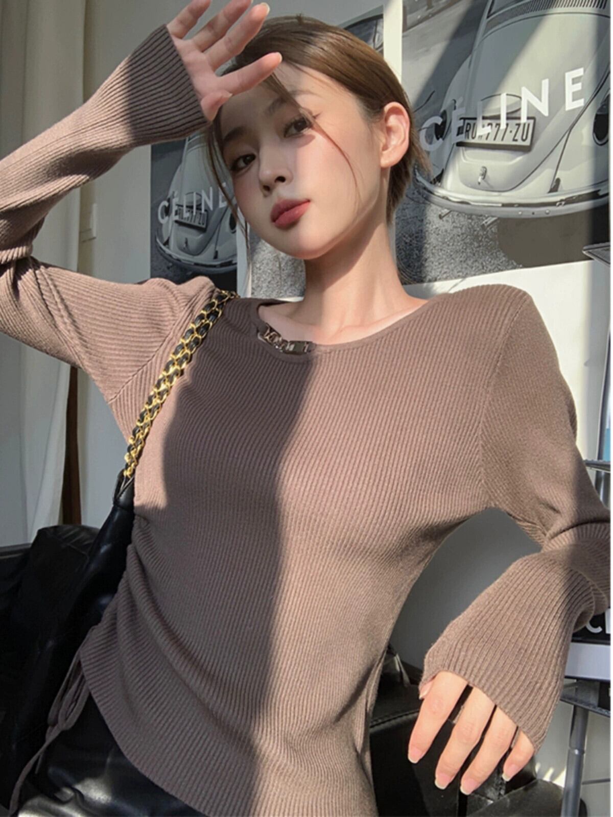 シックでハイエンドの巾着セーター2023年秋の新しいスリムフィットデザインのボトリングトップ女性 オータム 秋物 missk45876313015