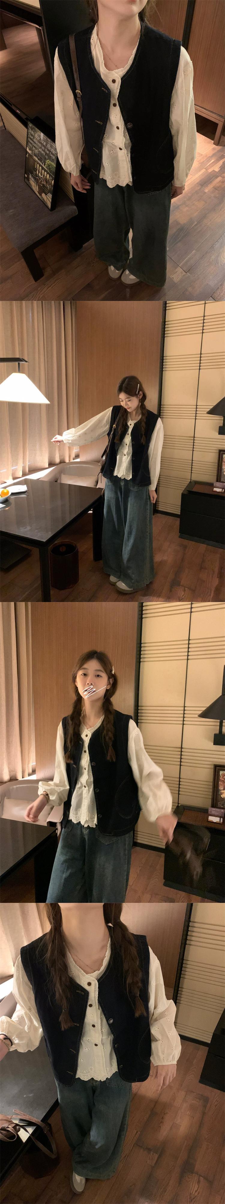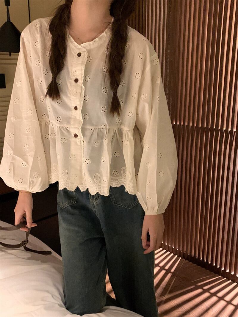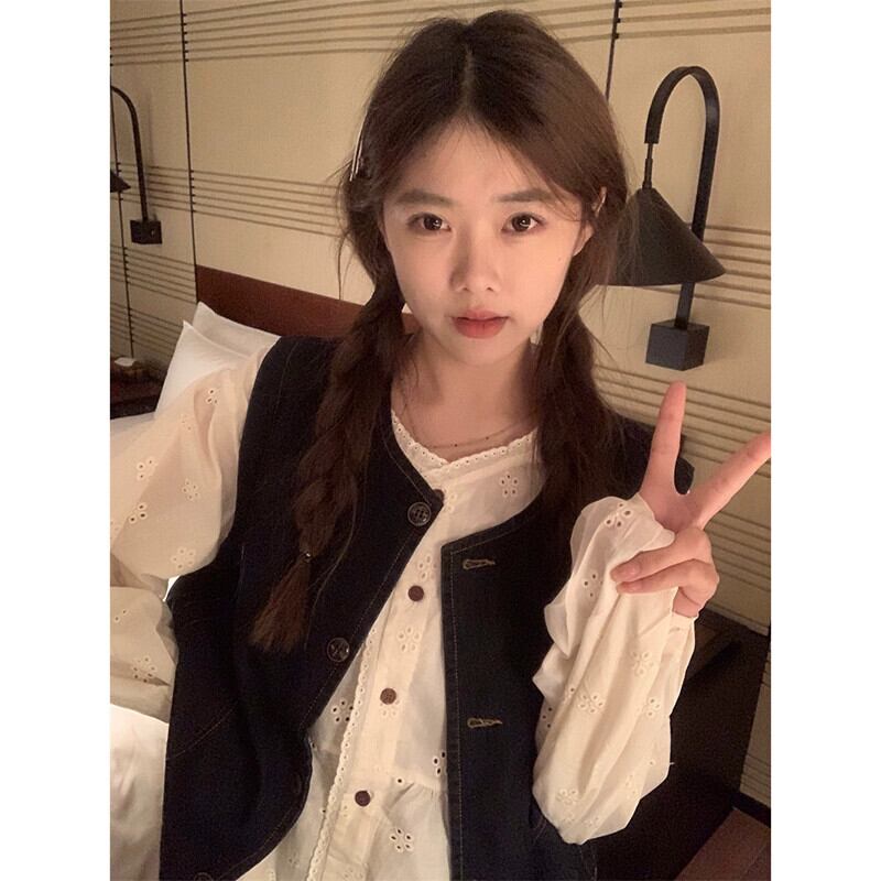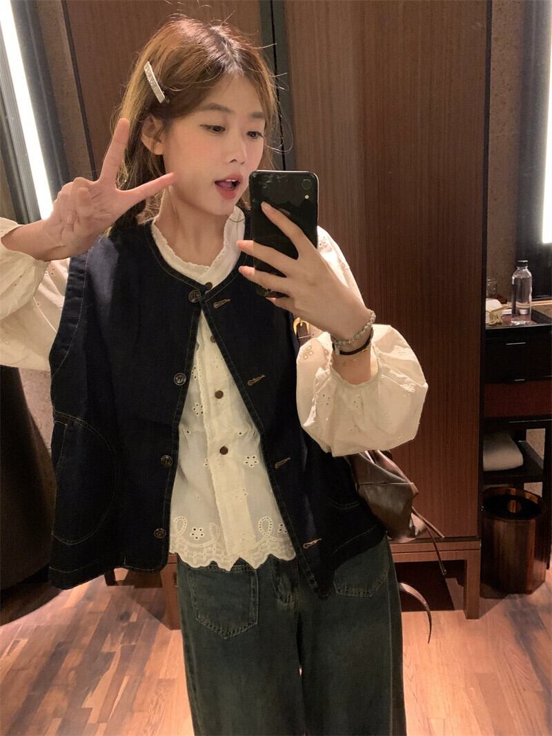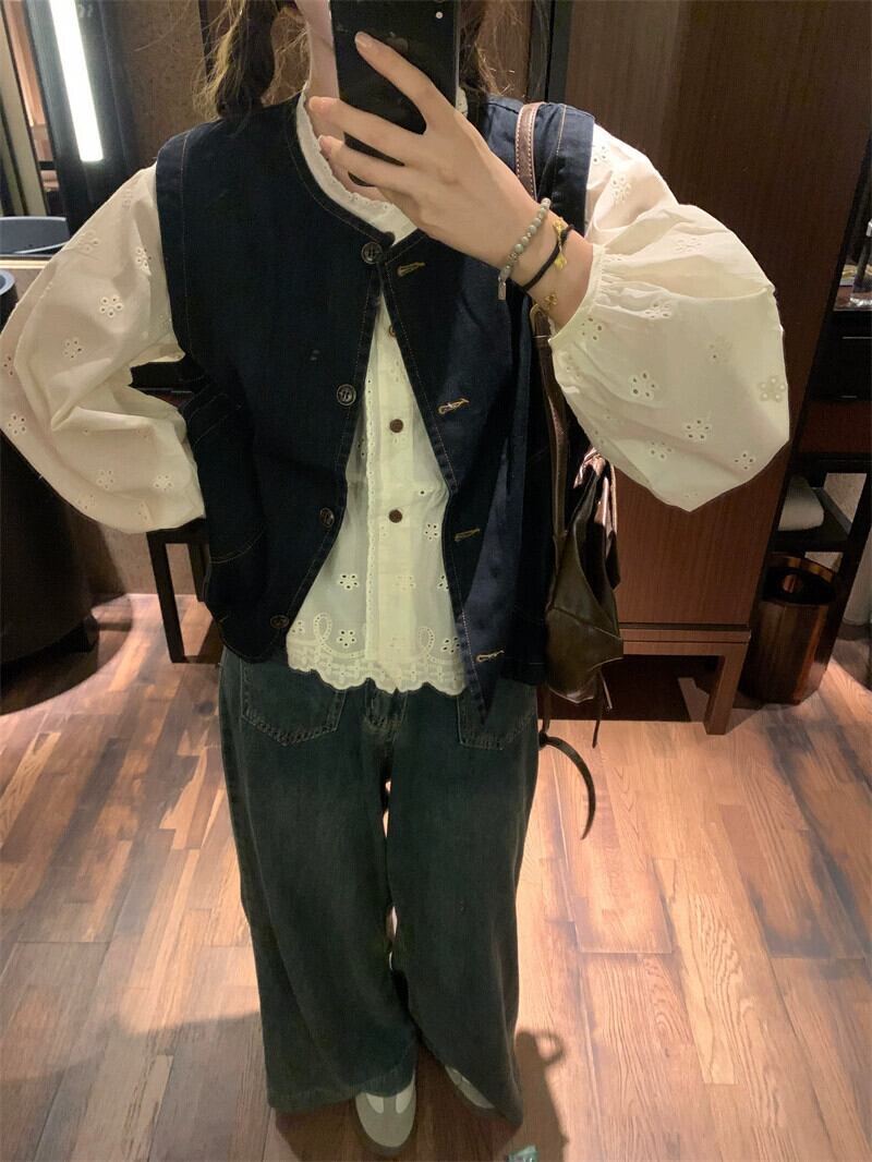 レトロフレンチデニムベストベスト刺繍パフ七分袖シャツ女性秋 2023 新しいファッションスーツ レッド オータム 秋物 missk24789595354