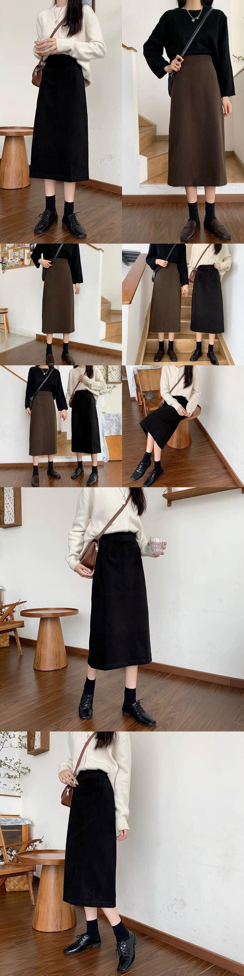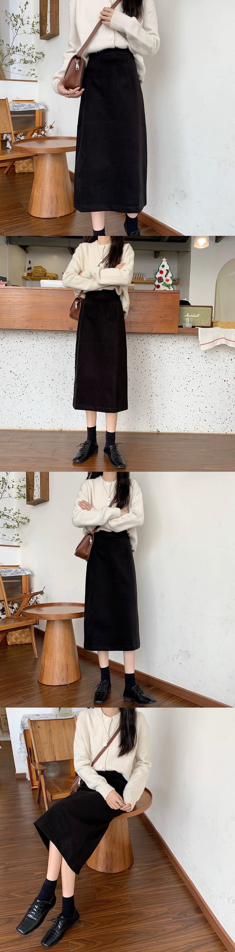 レトロスリット黒スカート女性の秋と冬の 2023 新しいハイウエストデザイン A ラインスカート秋のミドル丈スカート ハイウェスト ブラック オータム 秋物 ウィンター 冬物 Aライン missk96366580129
