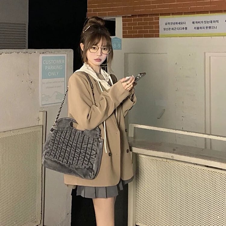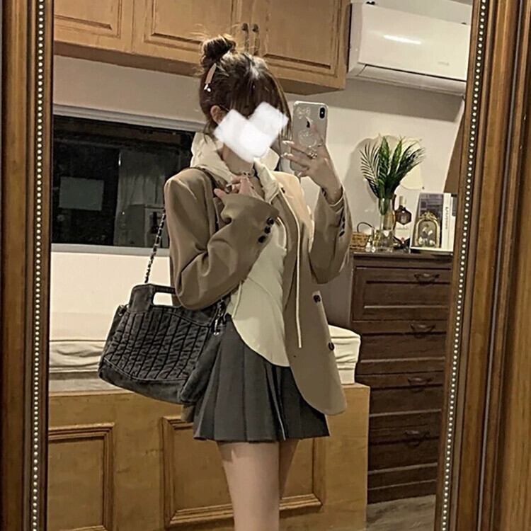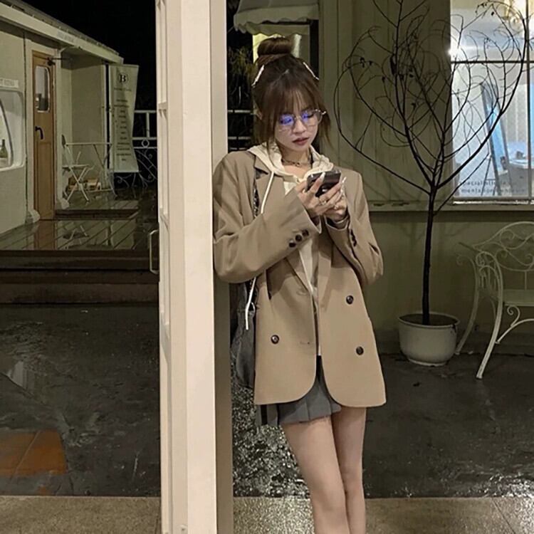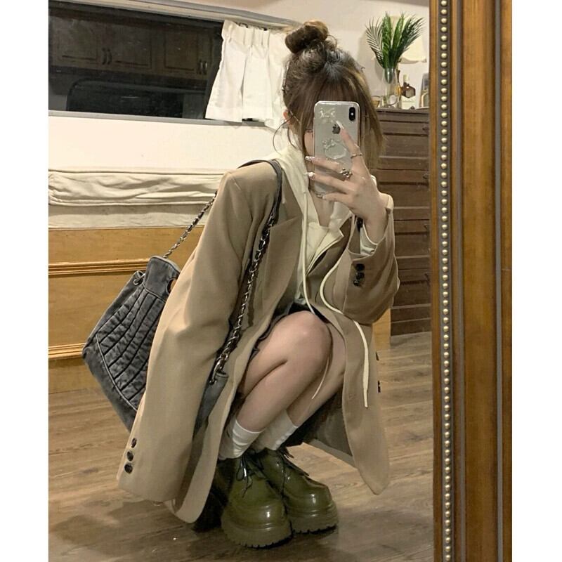 気質長袖スーツジャケット女性初秋 2023 新デザインダブルブレストルーズミッドレングススーツトップ ロング オータム 秋物 missk6202898281