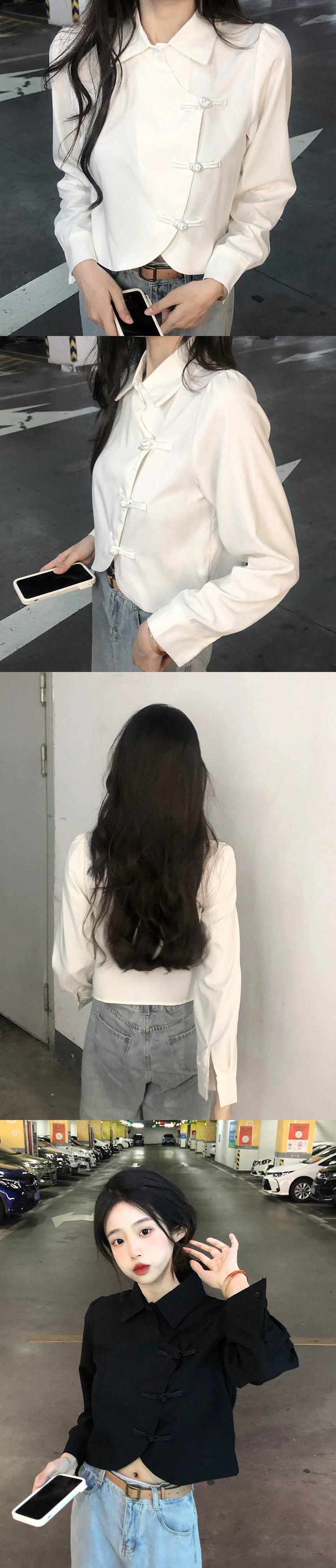 中国風のショートボタンポロカラーシャツ秋 2023 新しいレトロファッション黒長袖トップス婦人服 ロング ブラック オータム 秋物 missk22570225030