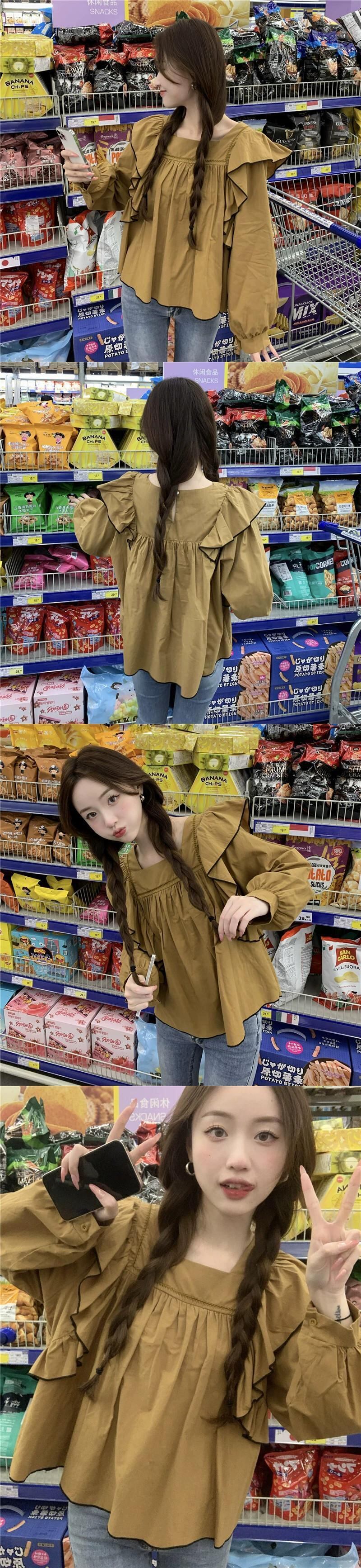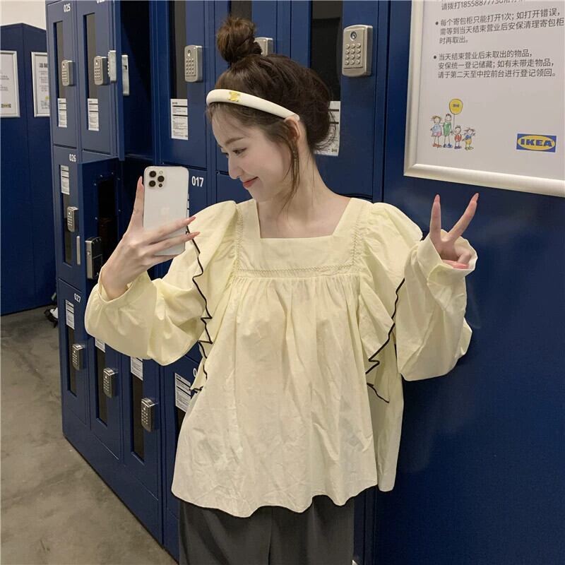 フレンチデザインフリルパフスリーブシャツレディース2023秋新作スクエアネックルーズ長袖ベビードールシャツ ロング オータム 秋物 スクウェア missk44050592910
