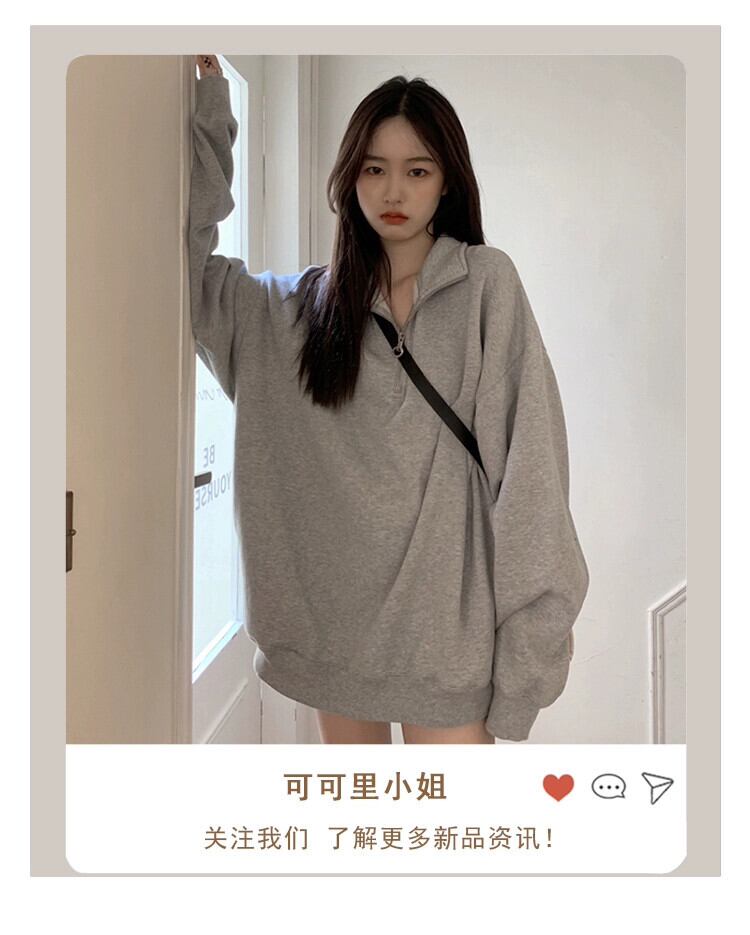 怠惰なスタイルのポロカラートレーナー秋 2023 新作 BF ルーズプルオーバートップミドル丈コート女子学生 オータム 秋物 missk82800668496