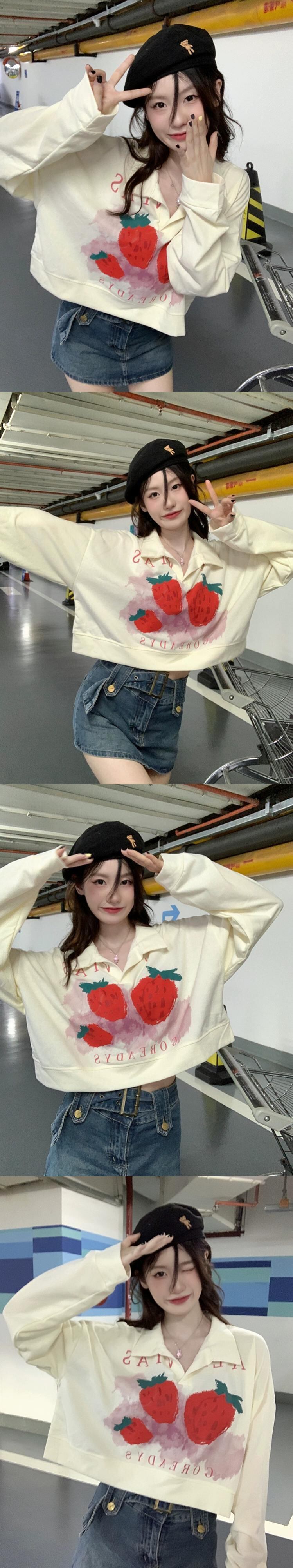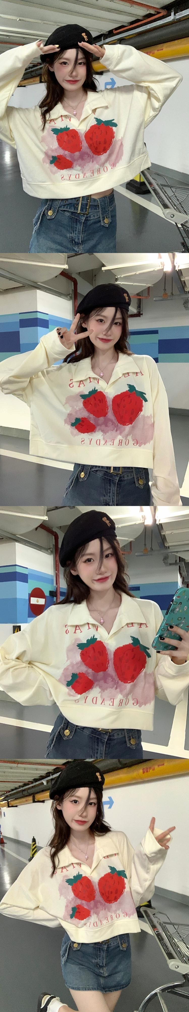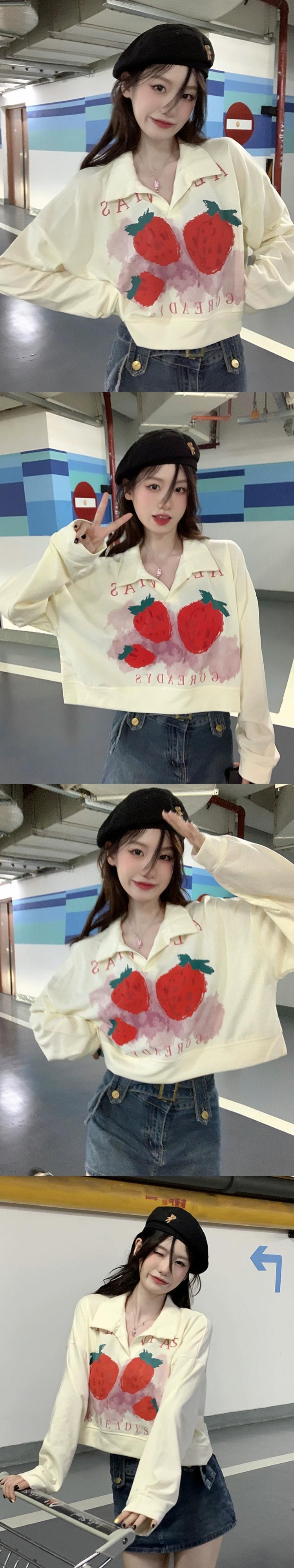 色:ダークグレーウォーターカラーストロベリーポロネックスウェットシャツ,アプリコットウォーターカラーストロベリーポロネックスウェットシャツ
