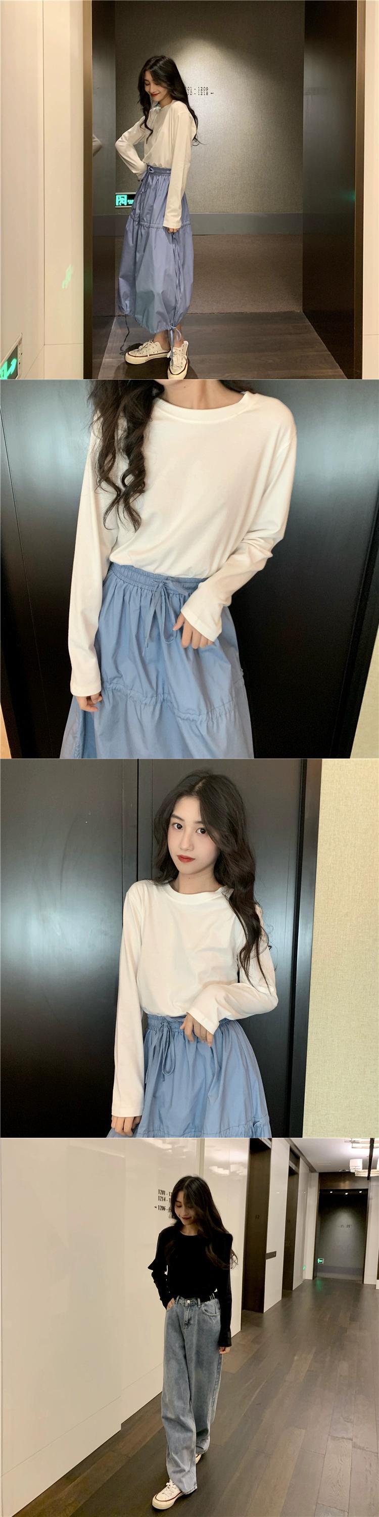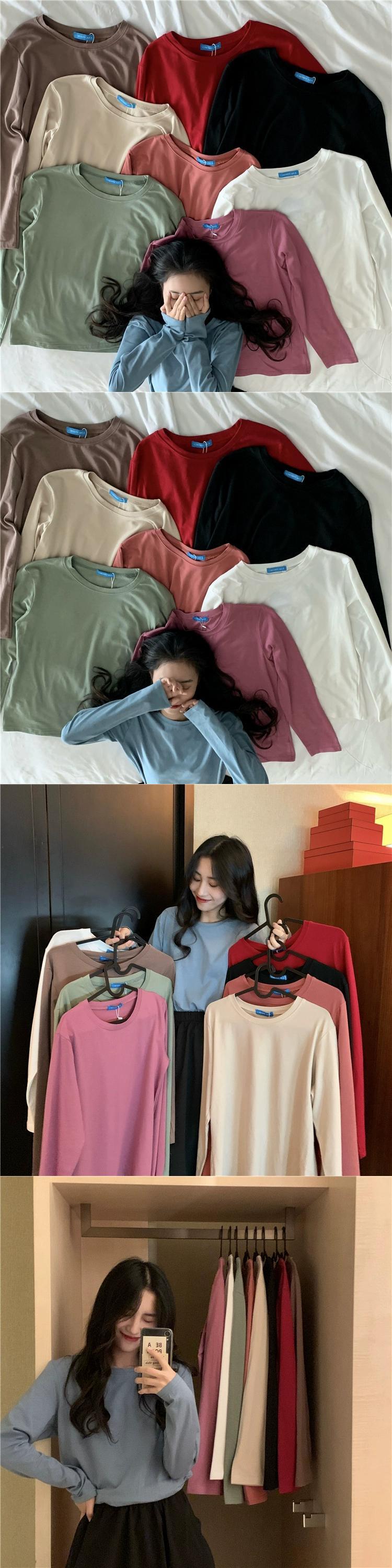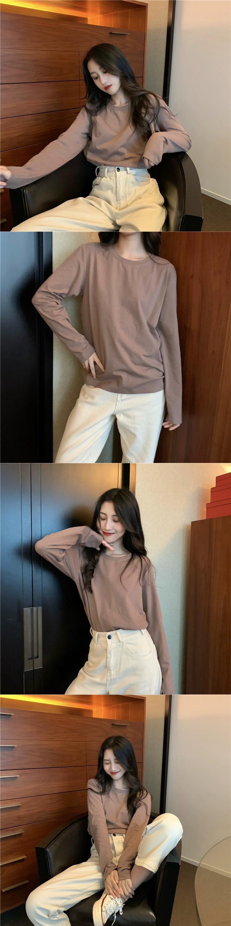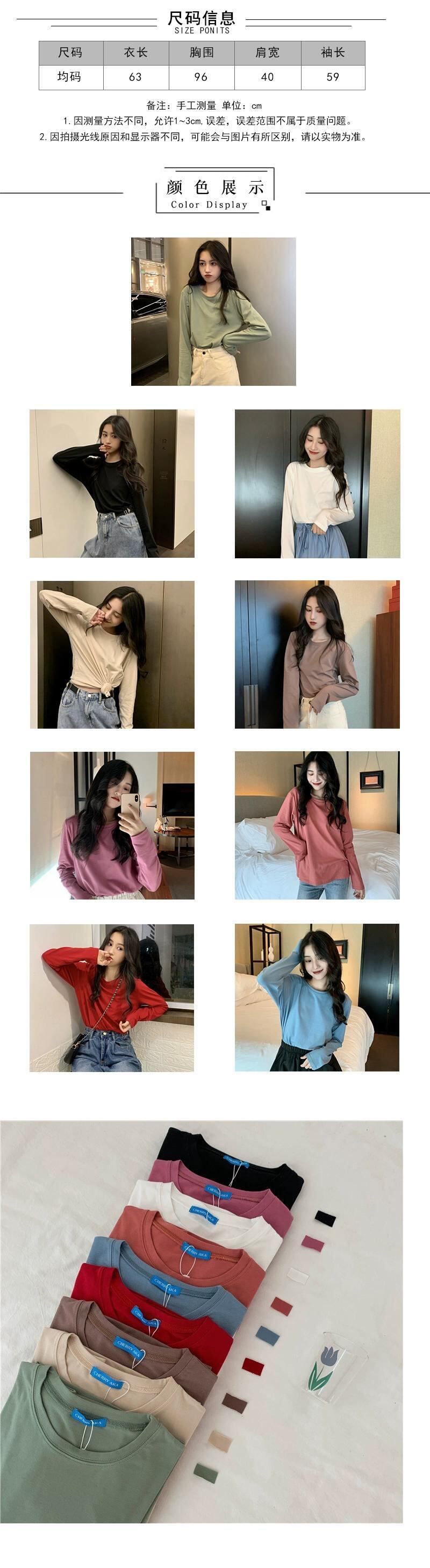 無地インナーホワイトボトムシャツ長袖 Tシャツレディース秋 2023 新しいルーズラウンドネックグリーントップイン ロング オータム 秋物 Oネック ソリッドカラー missk52442770617