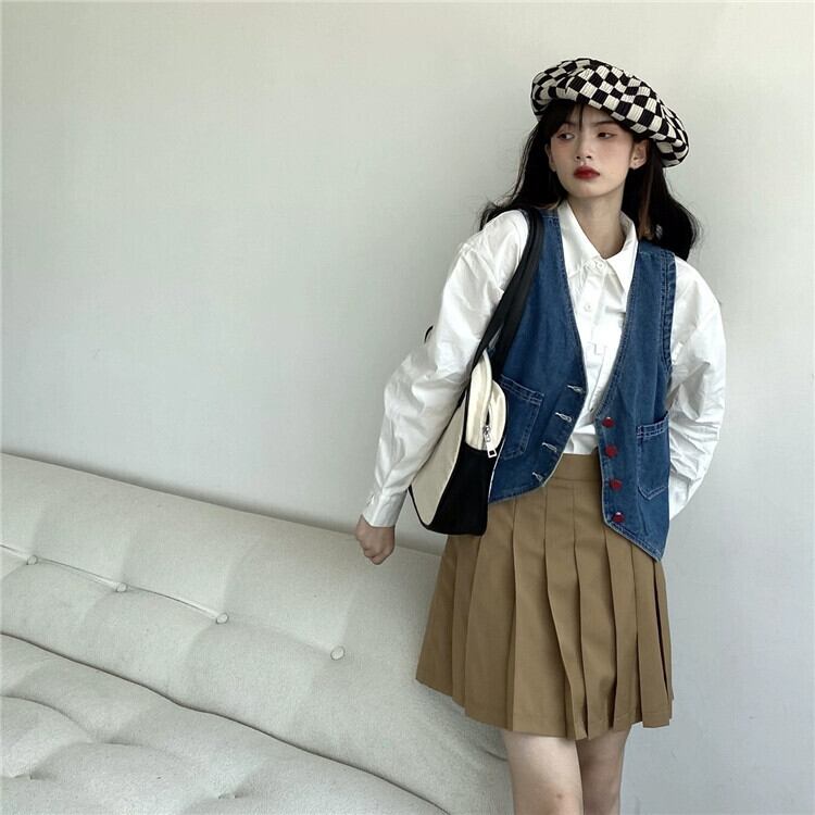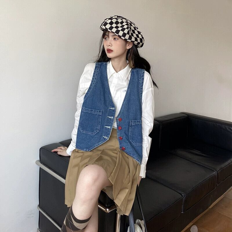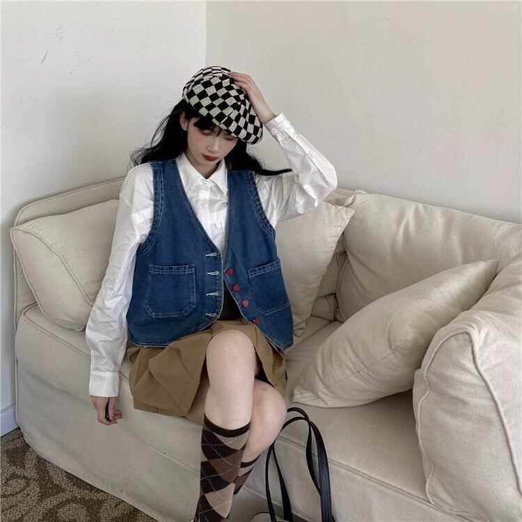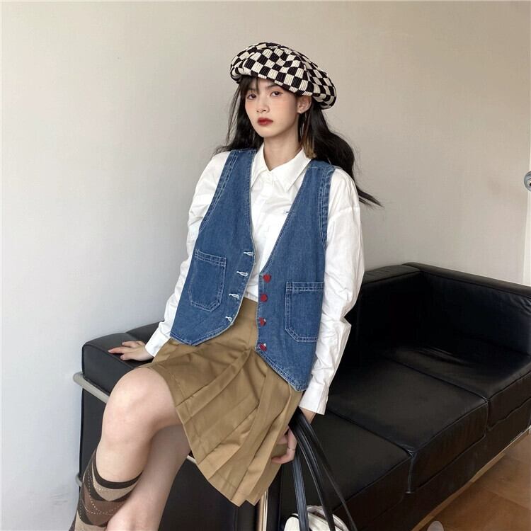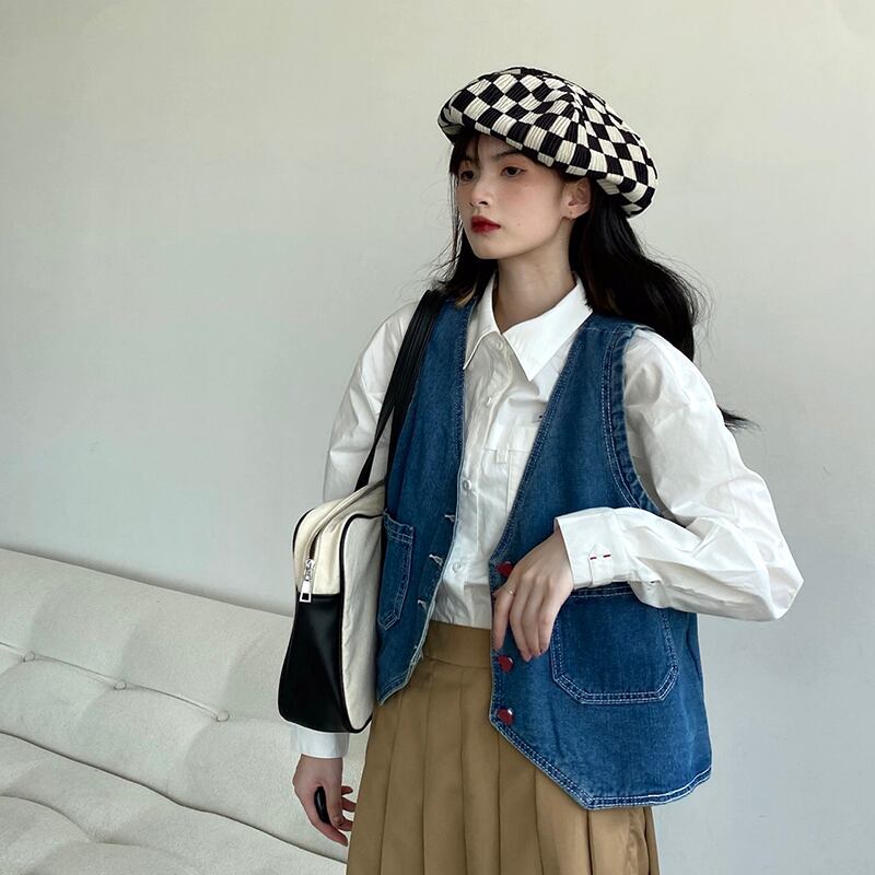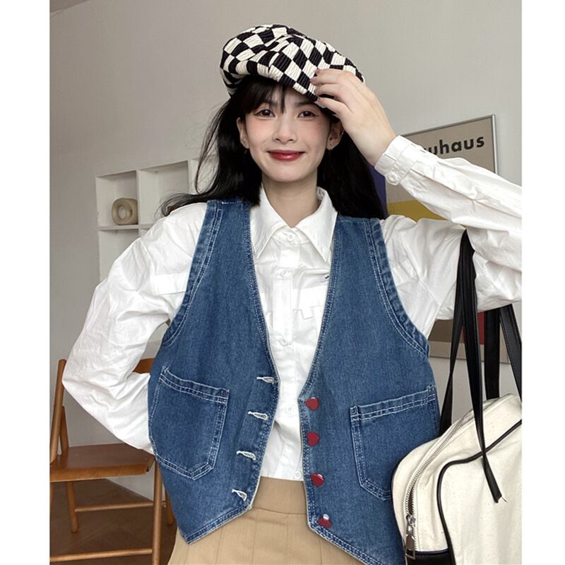 ショートデニムベスト女性 2023 秋の新しい甘くてクールなデザインニッチ V ネックノースリーブベストトップイントレンド 大人ガーリー スウィート キュート カジュアル オータム 秋物 Vネック missk82391749630