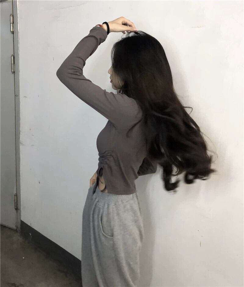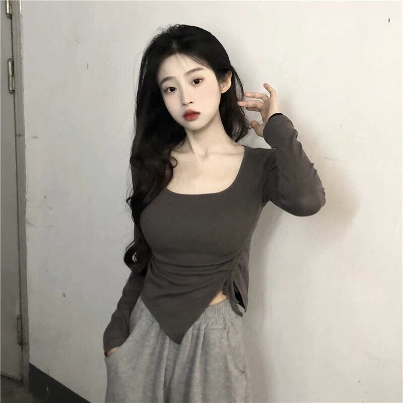 ホットショート巾着長袖 Tシャツ秋 2023 新しいスリムファッション不規則なデザイン底トップ女性 ロング オータム 秋物 missk20839147220